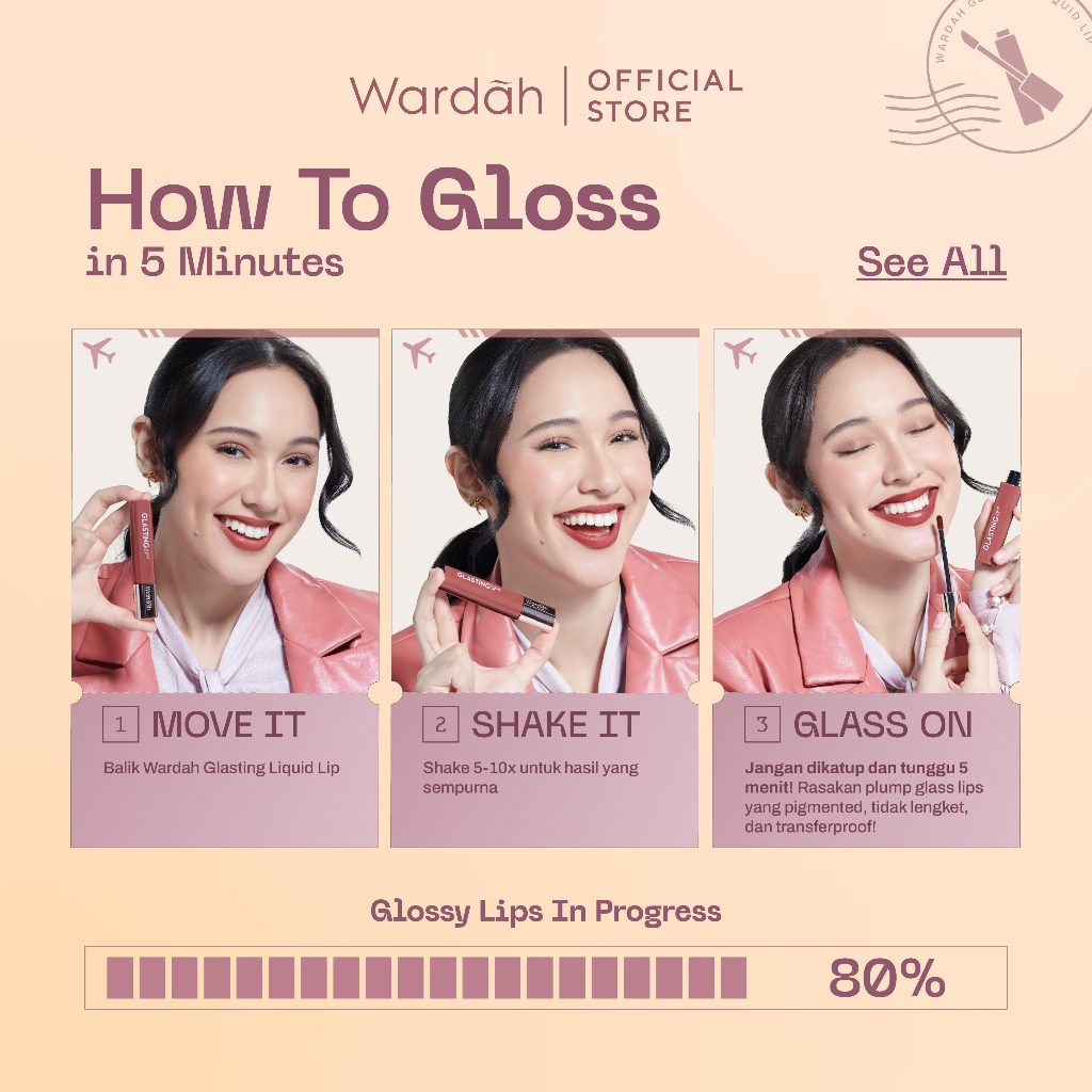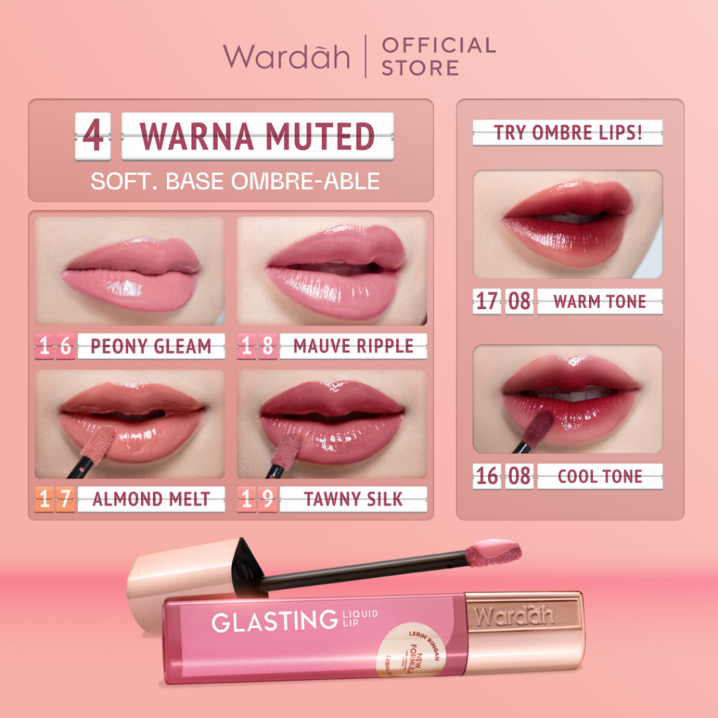 WARDAH Lip Cream Glossy Glasting Liquid Lip - Hi-Pigmented Glass Color, Ringan, Tidak Lengket, Transferproof Liptint-Lipgloss-Lipstik-Lip Tint-Lip Matte-Lipstick-Lipcream- Glossy Lip Longlasting Waterproof Tahan Lama- Makeup