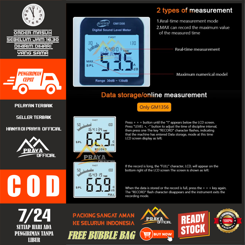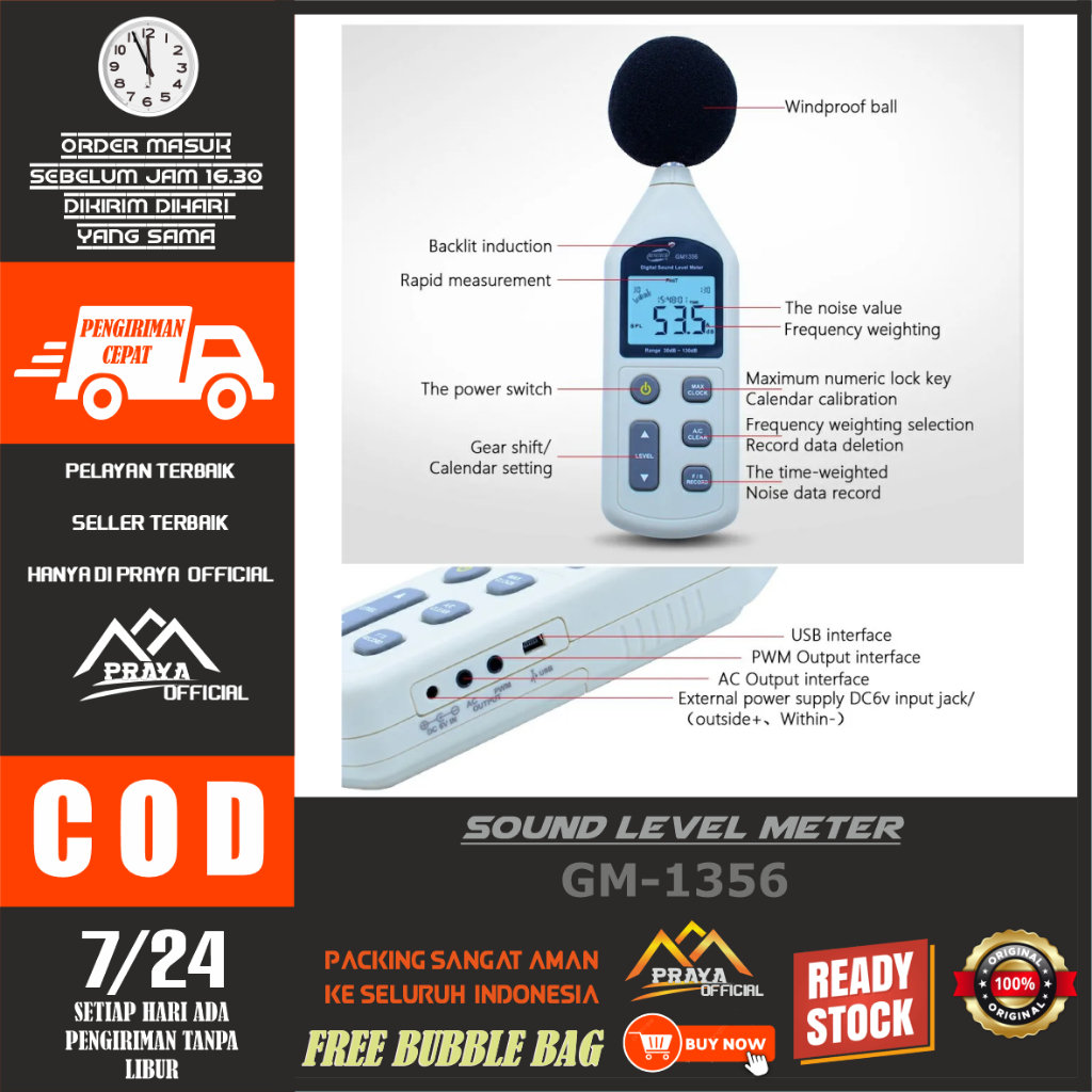 NEW !!! Sound Level Meter GM1356 Benetech Data Logger Tester USB Decibel GM 1356 Suara GM-1356 Gauge Desibel