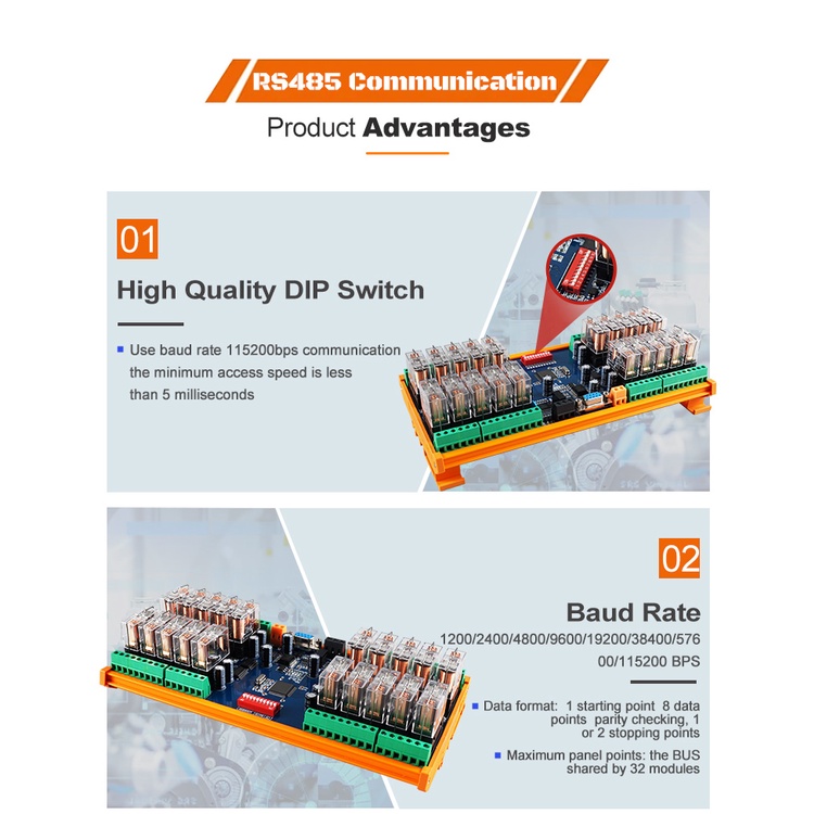 NEW Aoshangming 20 channel RS485 RS232 Relay Module 16A DC12V/24V Relay Modbus Rtu Control Board G2R-1-E for LED