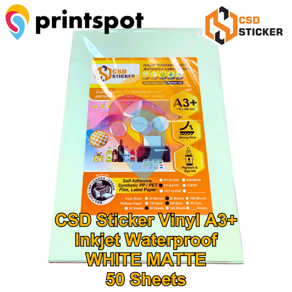 NEW CSD Sticker Vinyl Print Inkjet A3+ Stiker Label Waterproof Anti Air Pack 50 Lembar