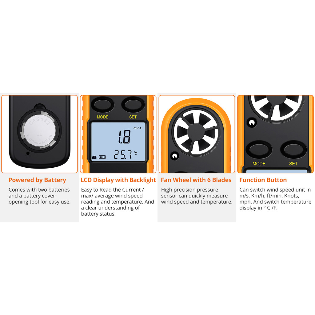NEW Digital Anemometer Pocket Smart Anemometer Air Wind Speed Scale Accurately Measure Wind Speed & Temperature