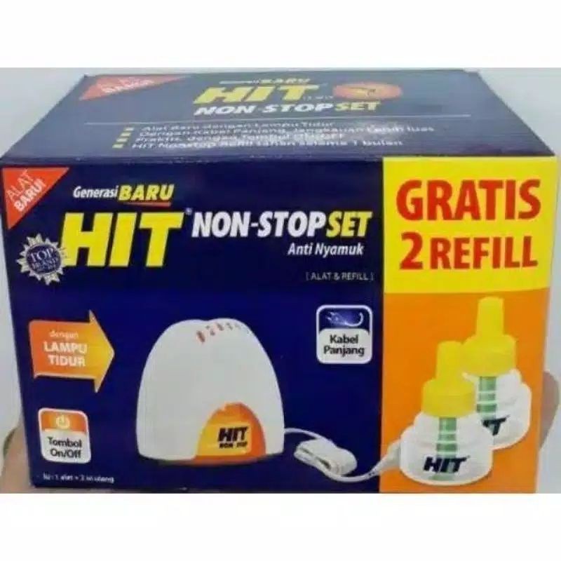 NEW HIT Non-Stop Set+ 2 Refile Liquid didalam kemasan,Obat Nyamuk paling ampuh