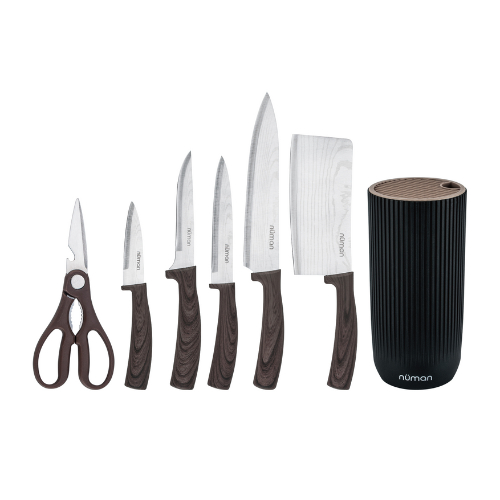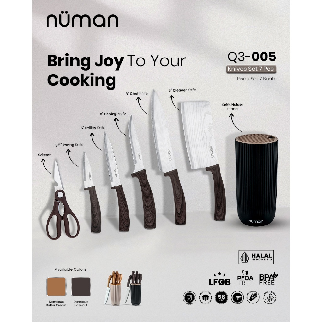 NEW LAUNCH - NUMAN KNIVES 7'S SET DAMASCUS | SET PISAU ISI 7 BUAH DENGAN TEMPAT PISAU