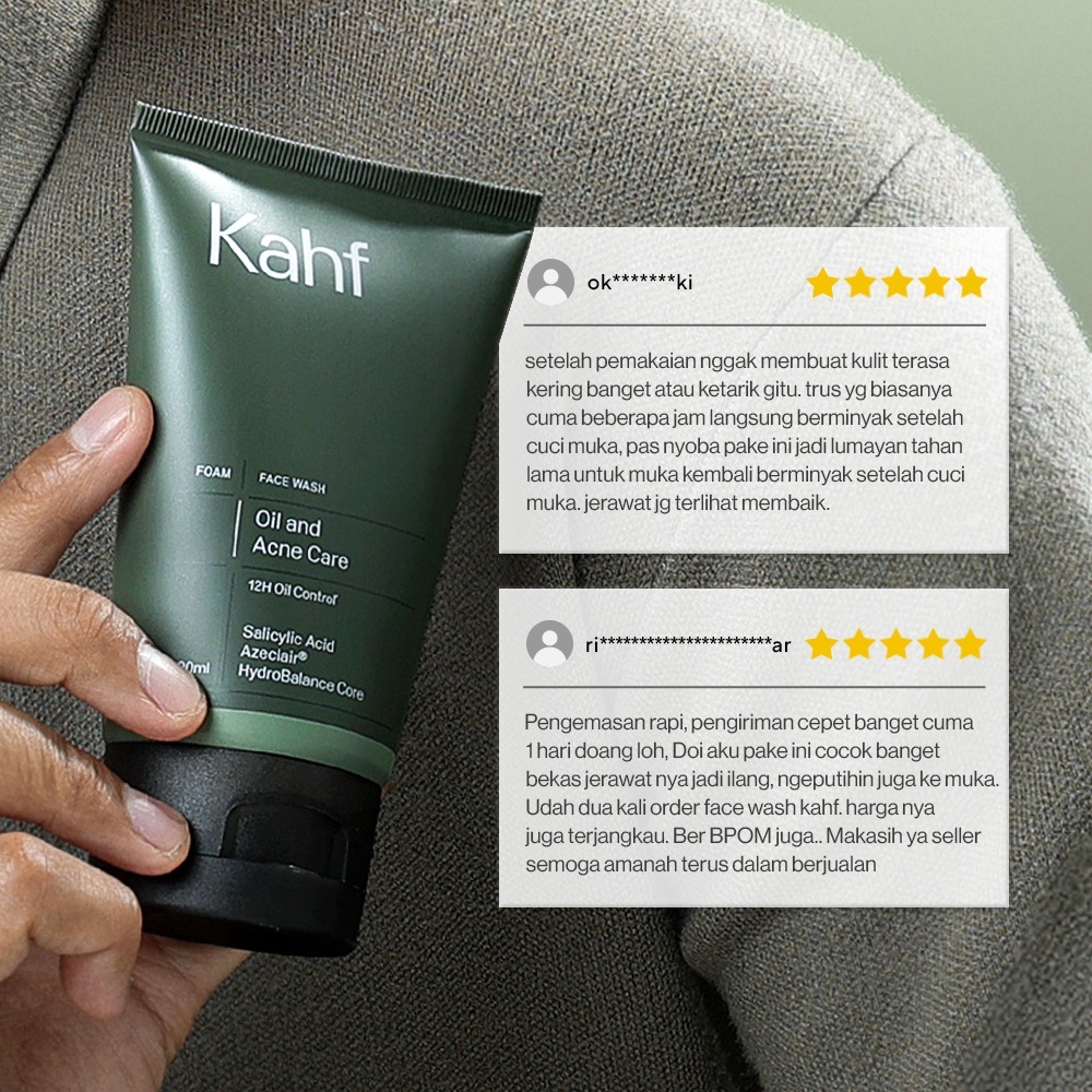 NEW LOOK BETTER FORMULA! Kahf Face Wash Oil and Acne Care 100 ml - Sabun Cuci Muka Pria untuk Membantu Lawan Jerawat dan Kontrol Minyak - Daily Use, Salicylic Acid, Hilangkan Prone, Bekas Beruntusan, Hydrating, Calm, Menenangkan, Hydration, Control