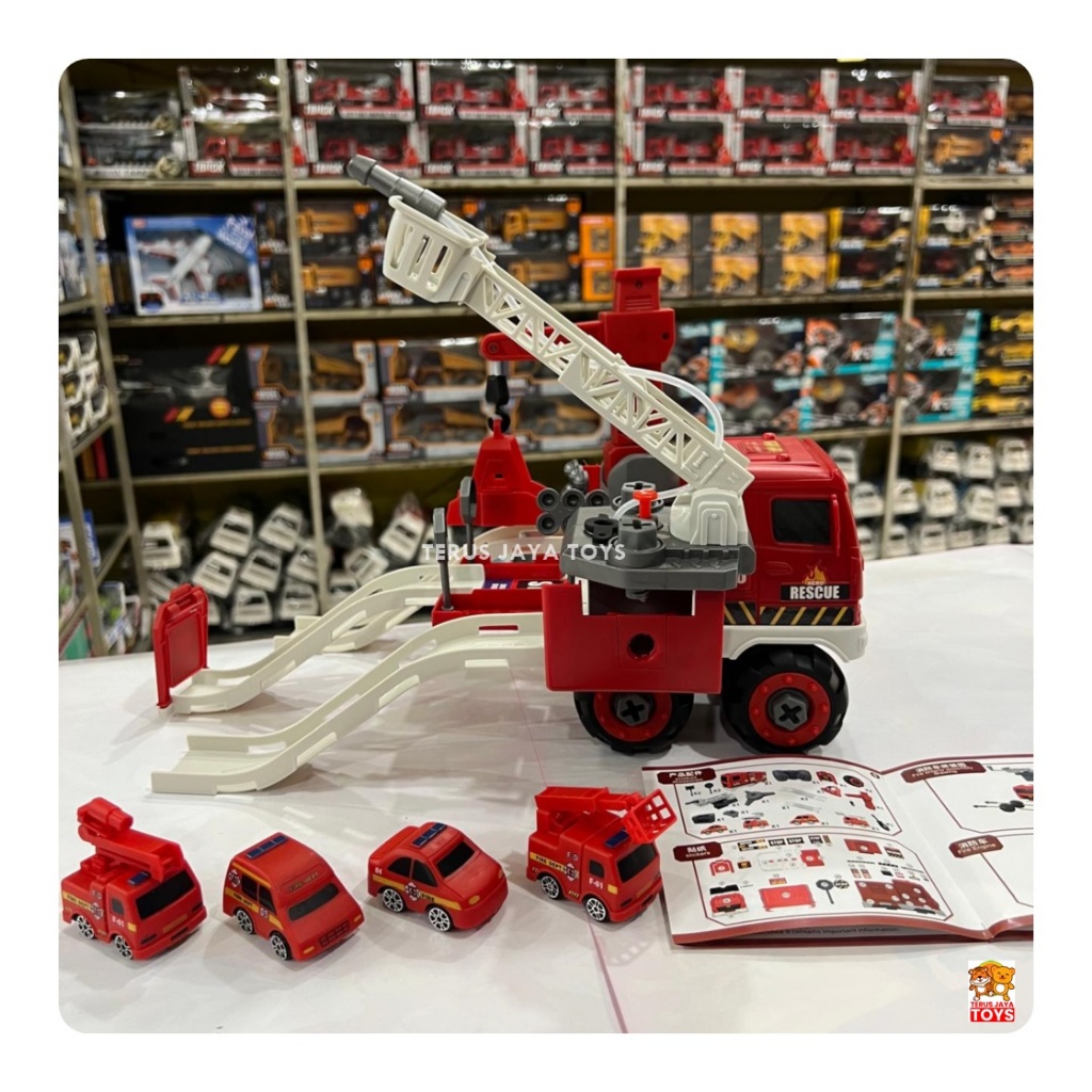 NEW MAINAN MOBIL TRUK DAMKAR BESAR 15637 MOBIL PEMADAM MUSIK FIRE ENGINE MOBIL BATERAI