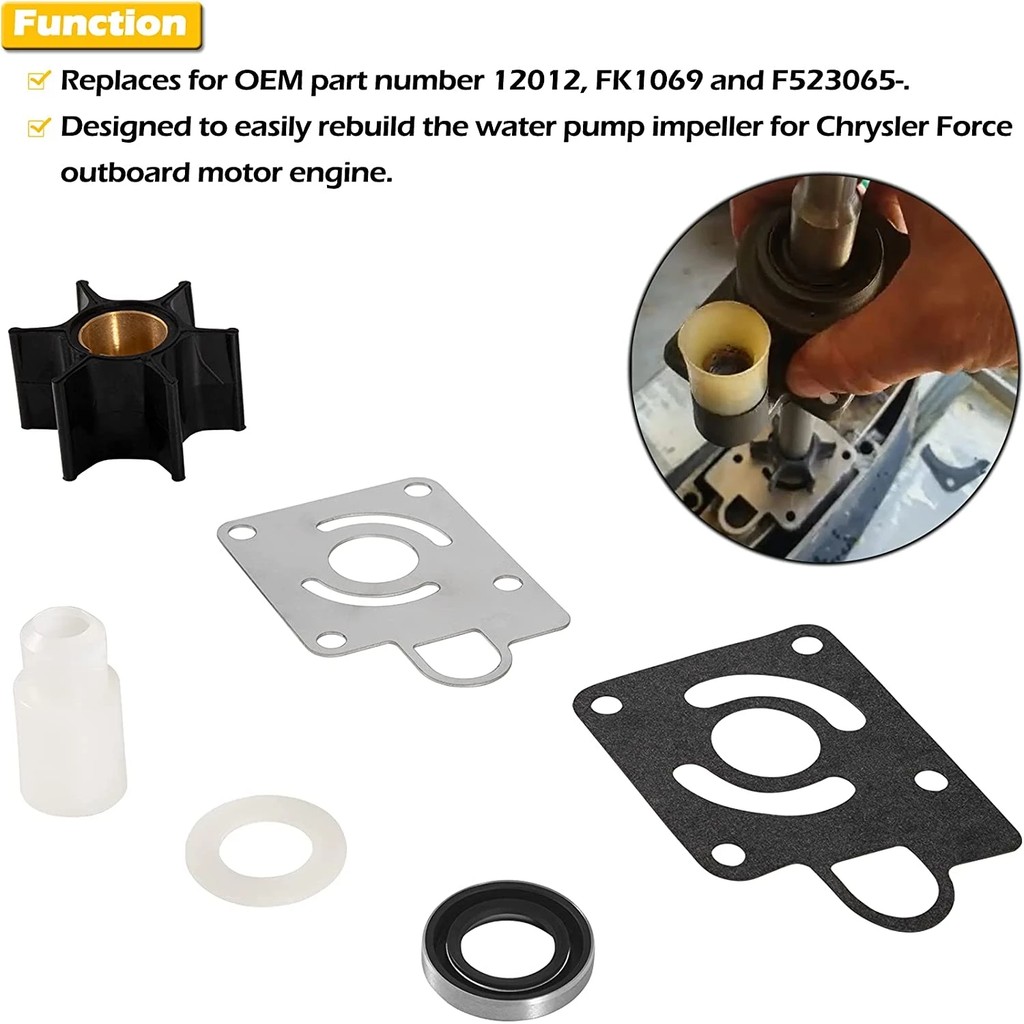 NEW MX Water Pump Impeller Kit For Chrysler Force 75 85 90 100 105 115 125 140 hp Replaces for OEM Part FK1069 Water Pump Repair Kit