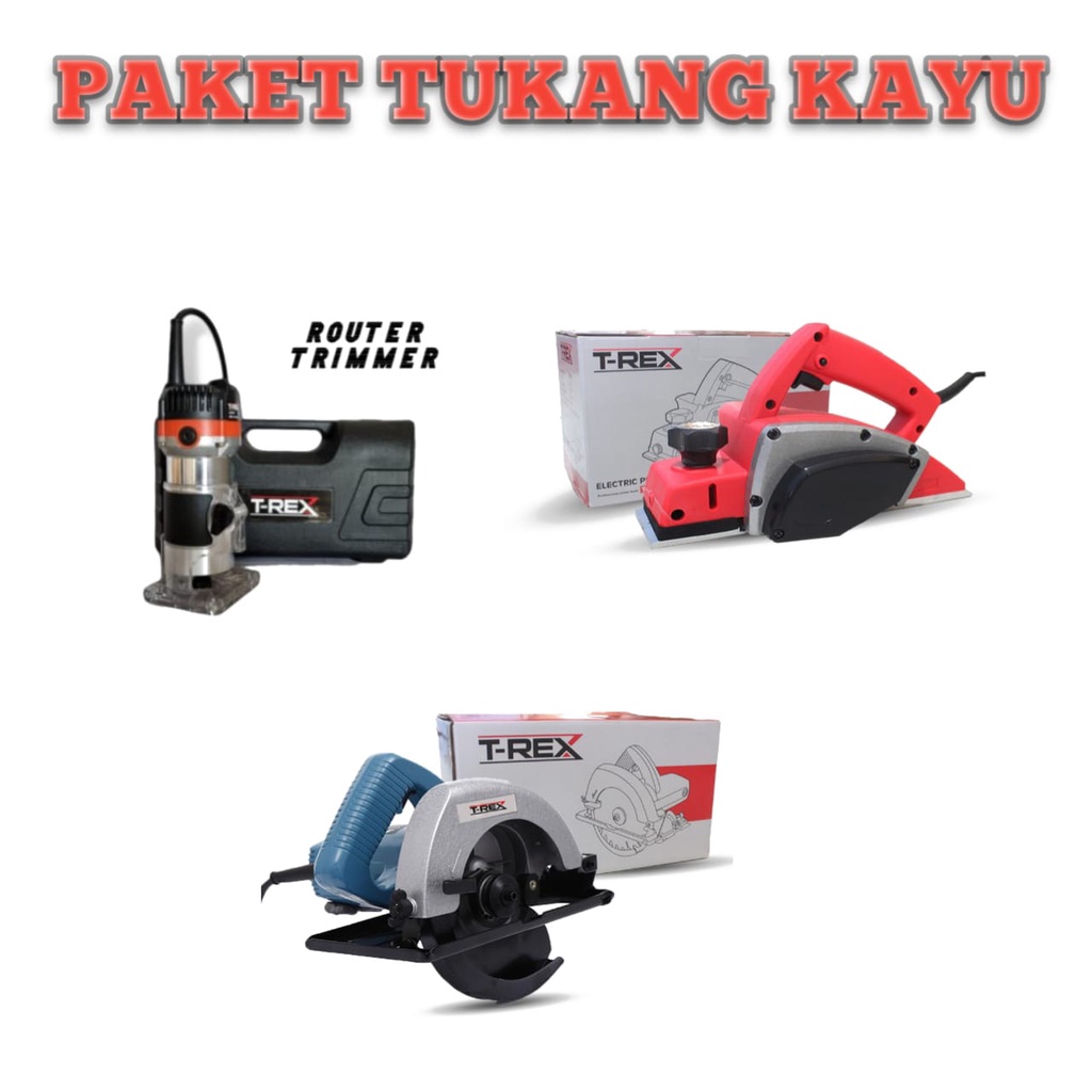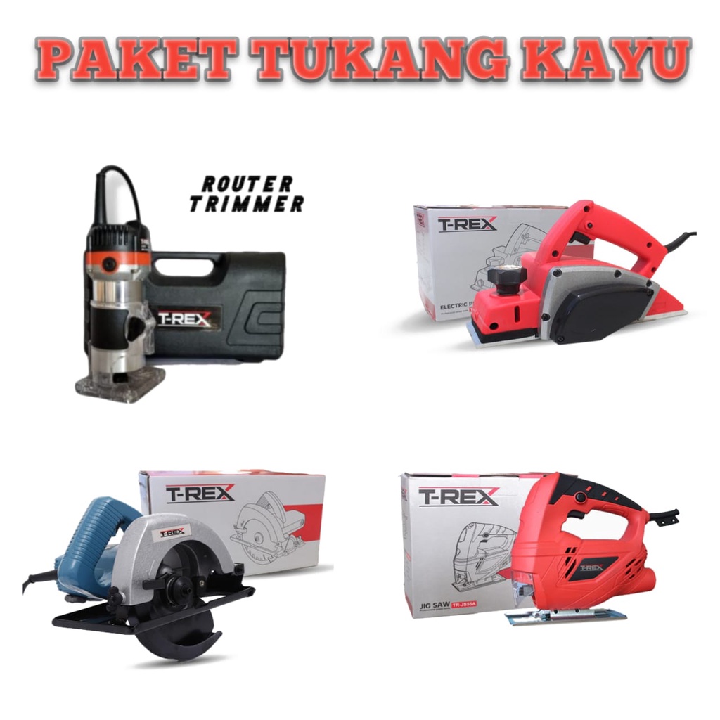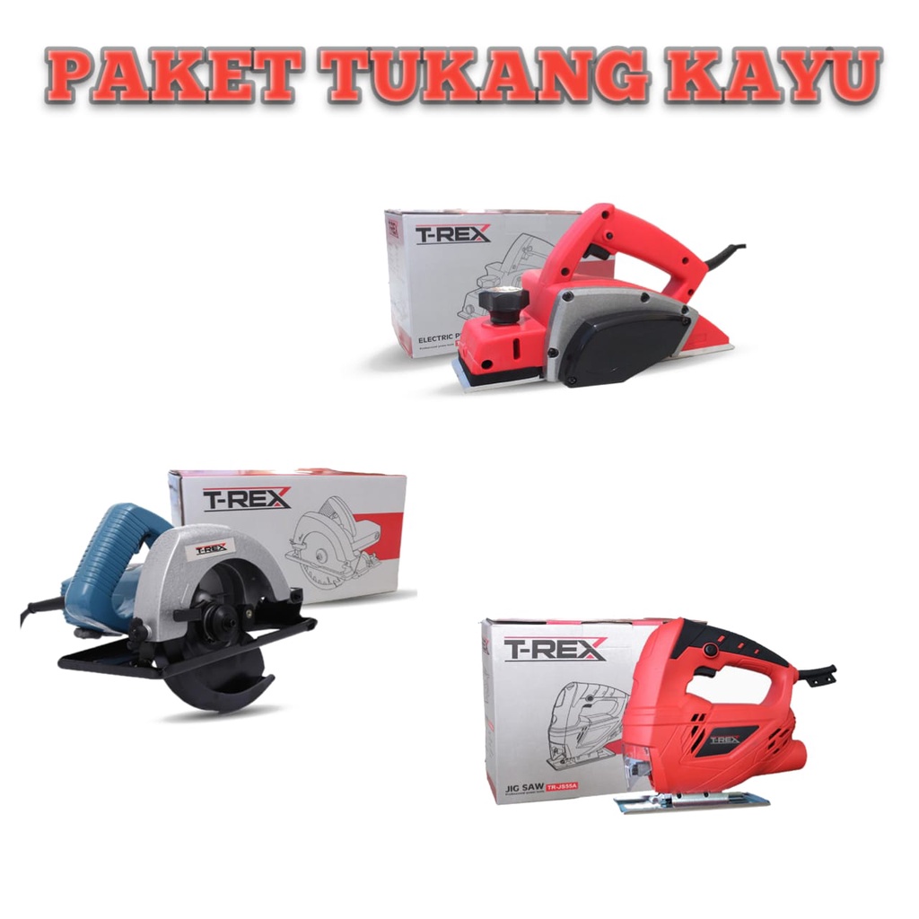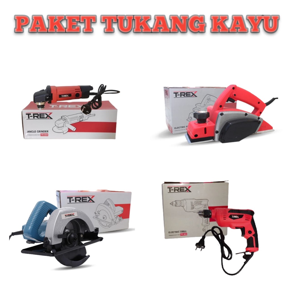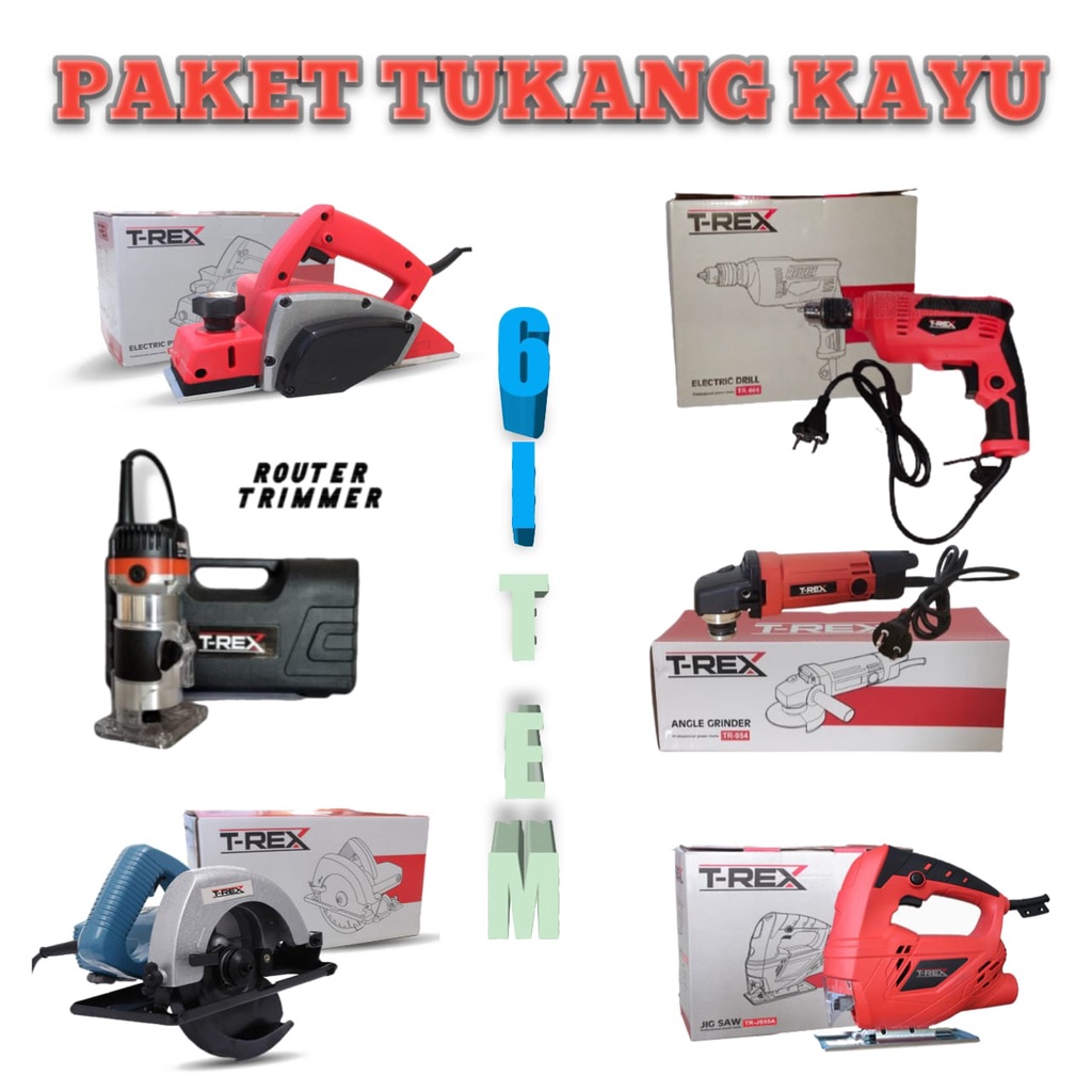 NEW PAKET TUKANG KAYU 6 item T-REX Mesin Serut kayu + mesin jigsaw + Mesin Profil KAYU + Mesin circular saw + mesin gerinda 4 inch + mesin bor 10mm bolak balik murah alat pertukangan lengkap ORIGINAL