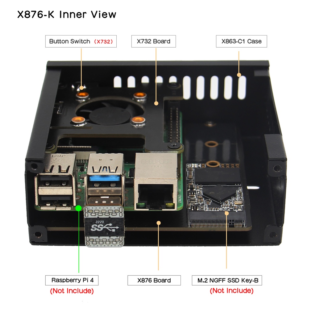 NEW Raspberry Pi M.2 NVME SATA SSD Shield / X876 Storage Expansion Board for Raspberry Pi 4 Model B