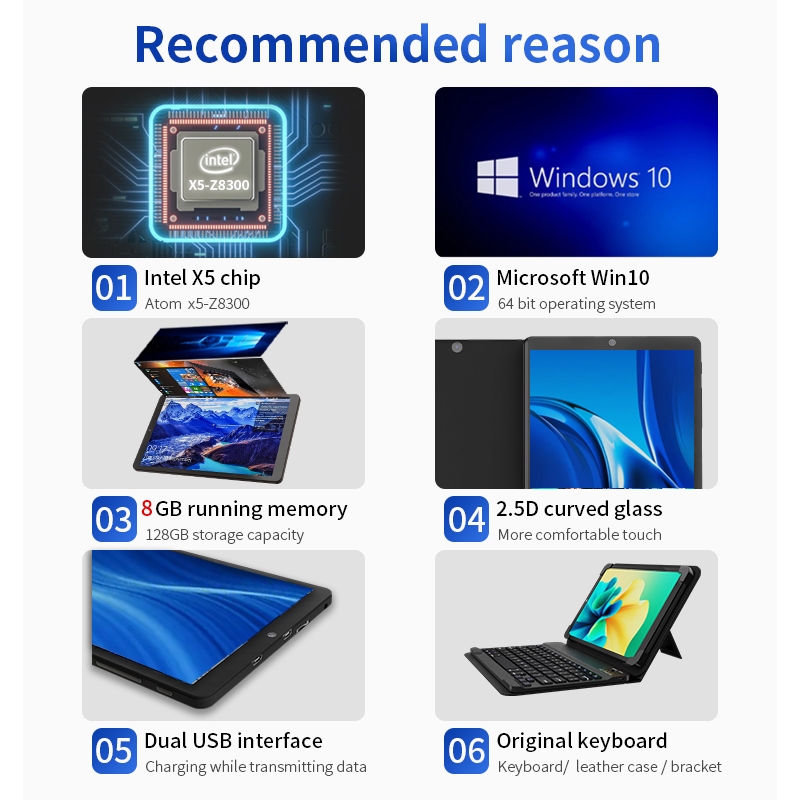NEXTFUN 8" Windows Tablet PC RAM 8GB Mini Pocket Touch Screen Laptop Intel Quad Core Processor
