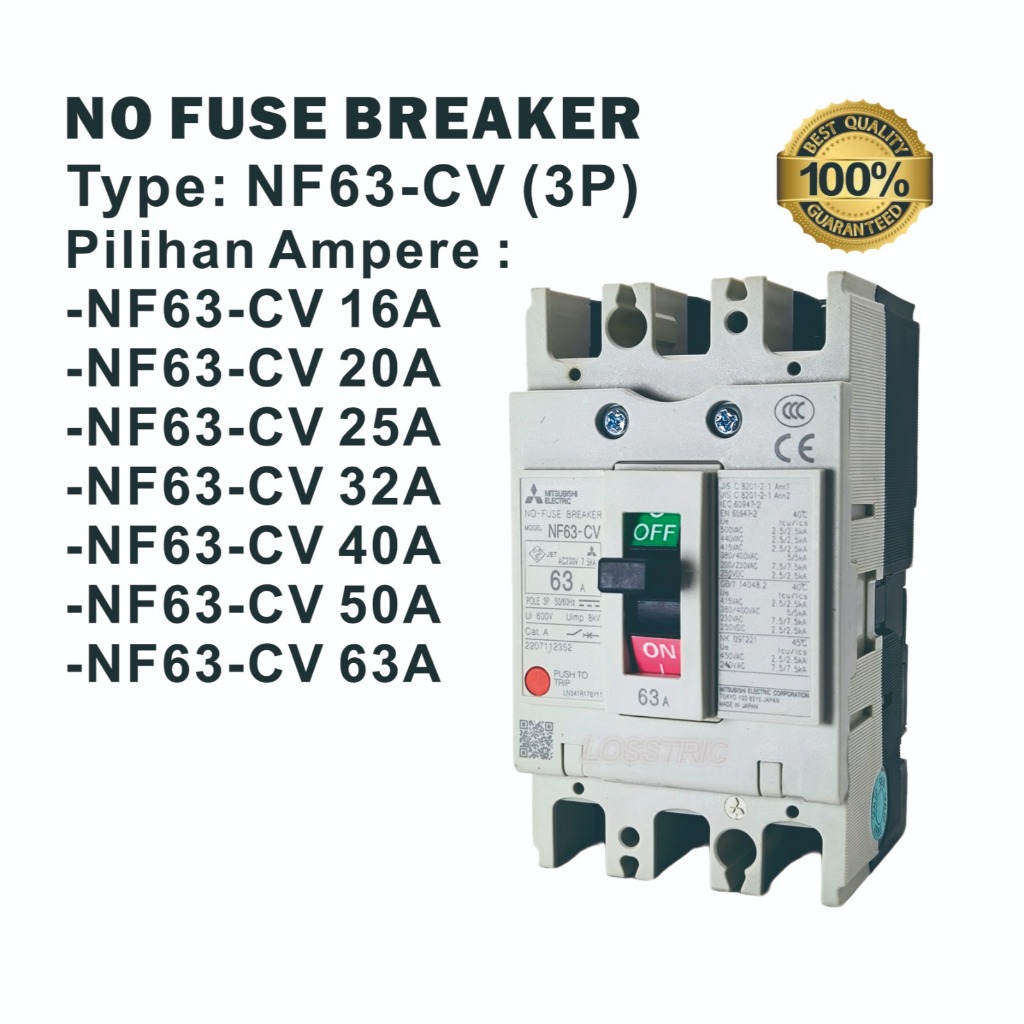 NFB (NO FUSE BREAKER ) MCCB 3P MITSUBISHI NF63-CV 16A/20A/25A/32A/40A/50A/63A