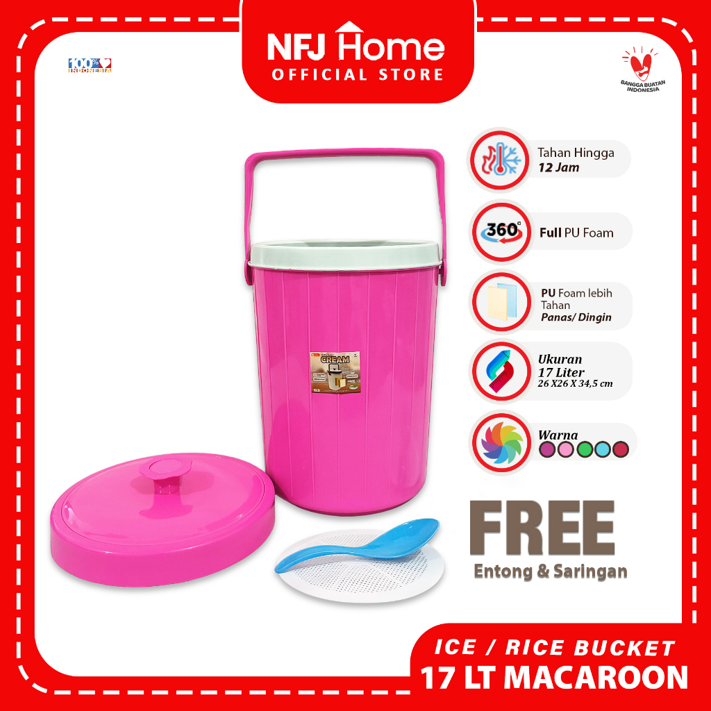 NFJ Rice / Ice bucket 17 Liter Macaroon - Termos nasi 17 liter / Termos / Ice Bucket 17 liter s Es
