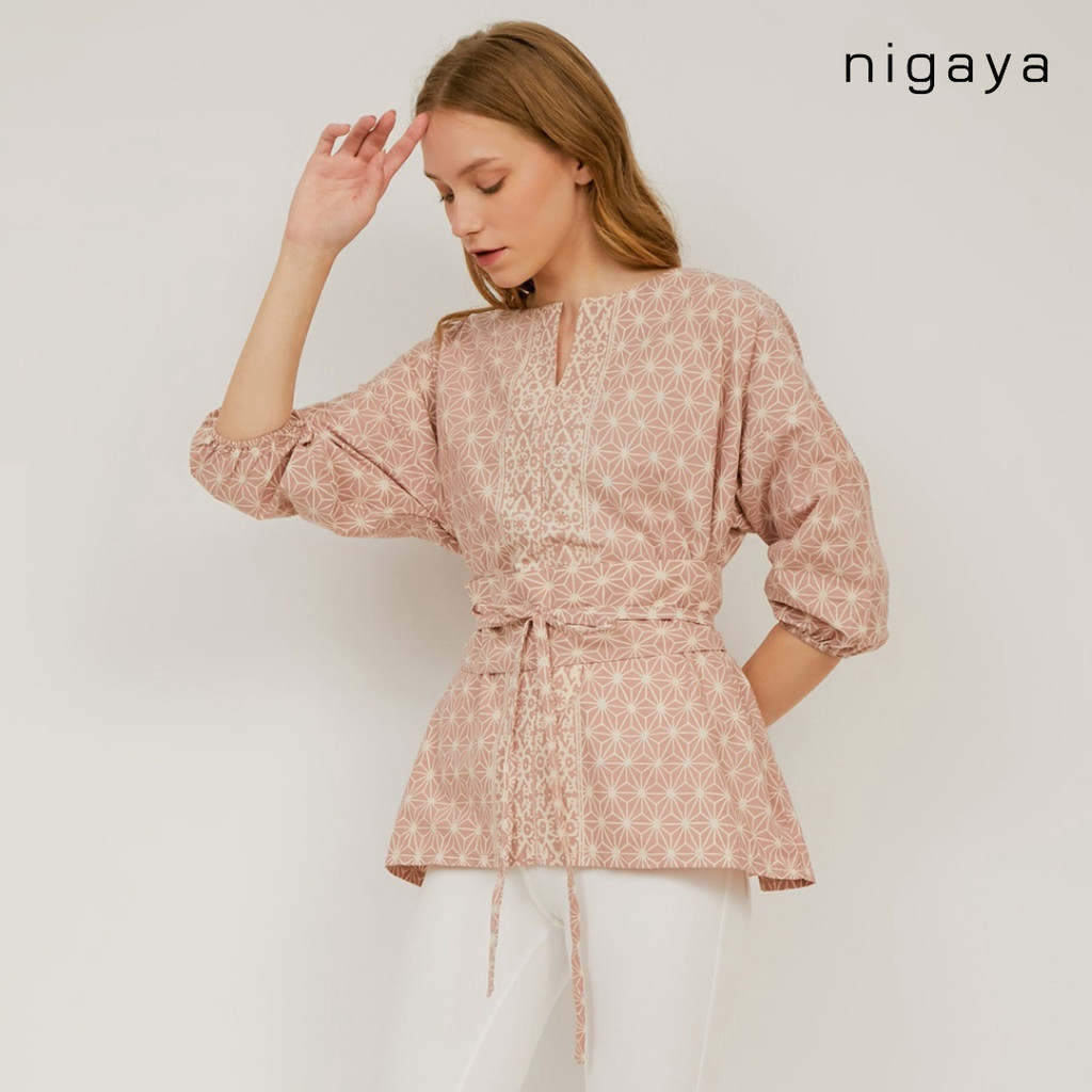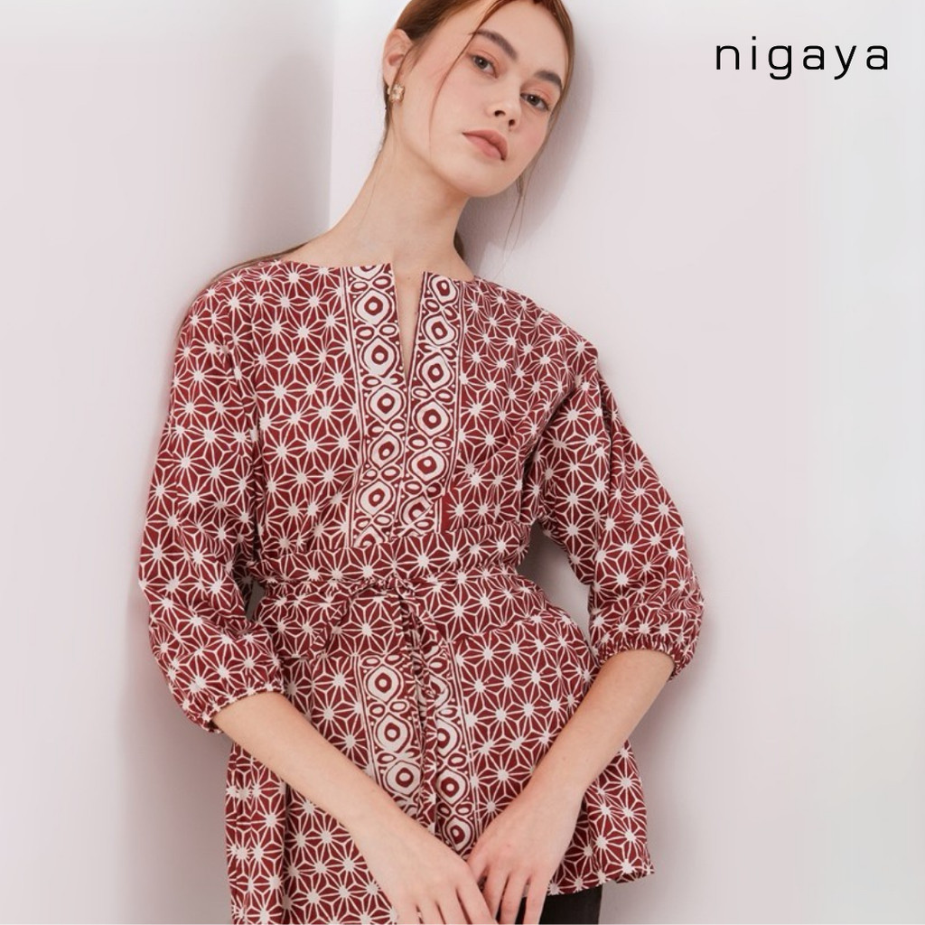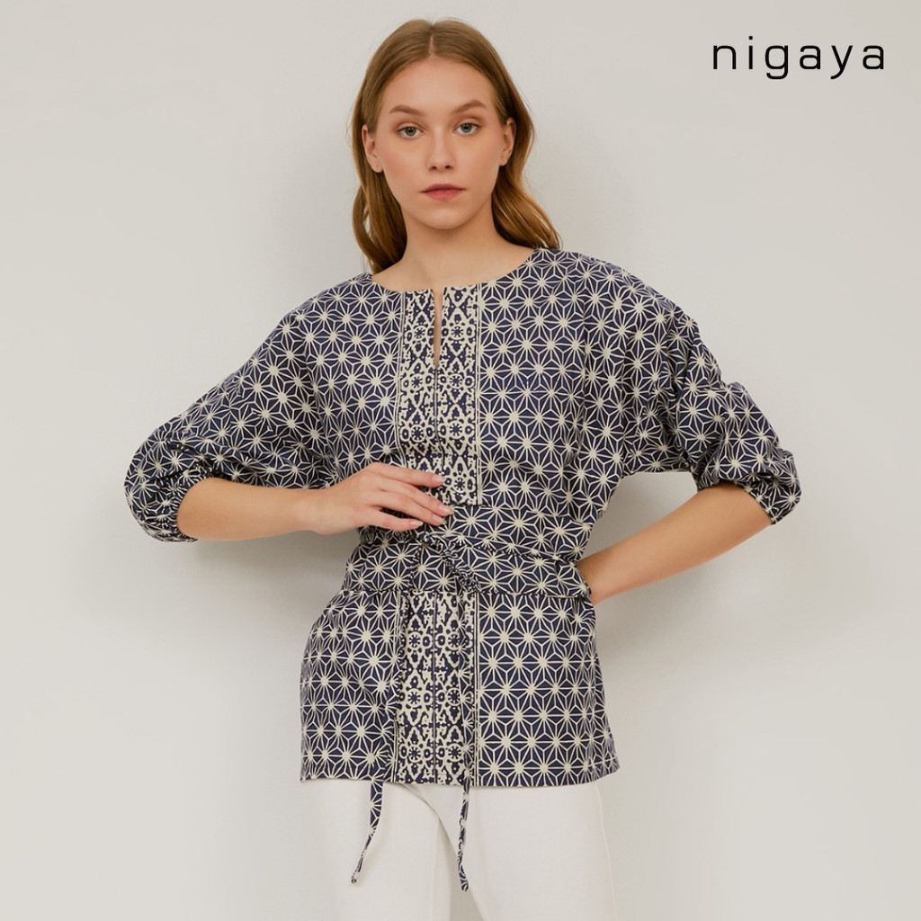 NIGAYA - Lala Top - Blouse Baju Atasan - Blus Batik Premium Wanita Kerja Modern Lengan Pendek