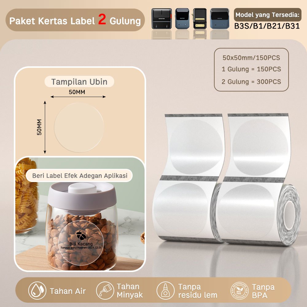 NIIMBOT B1 Printer Label, Pembuat Label Portabel Bluetooth lebar 20-50mm