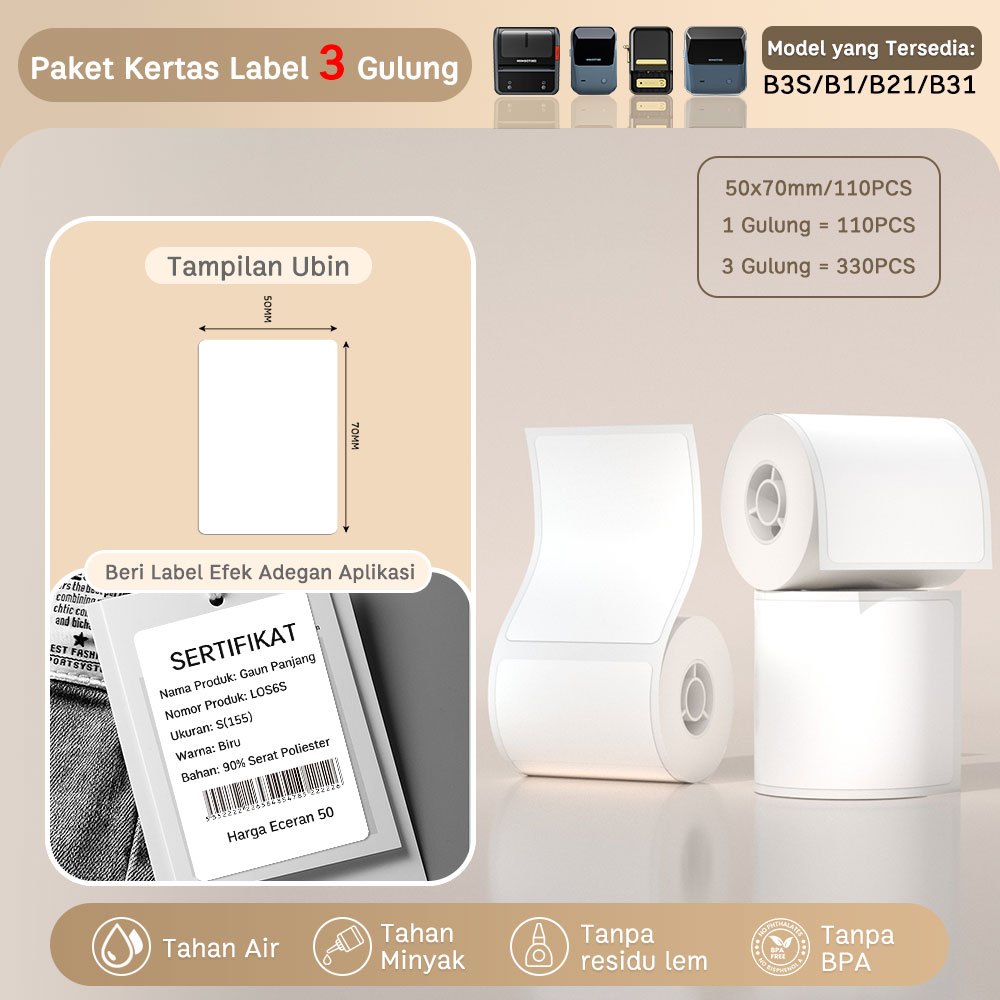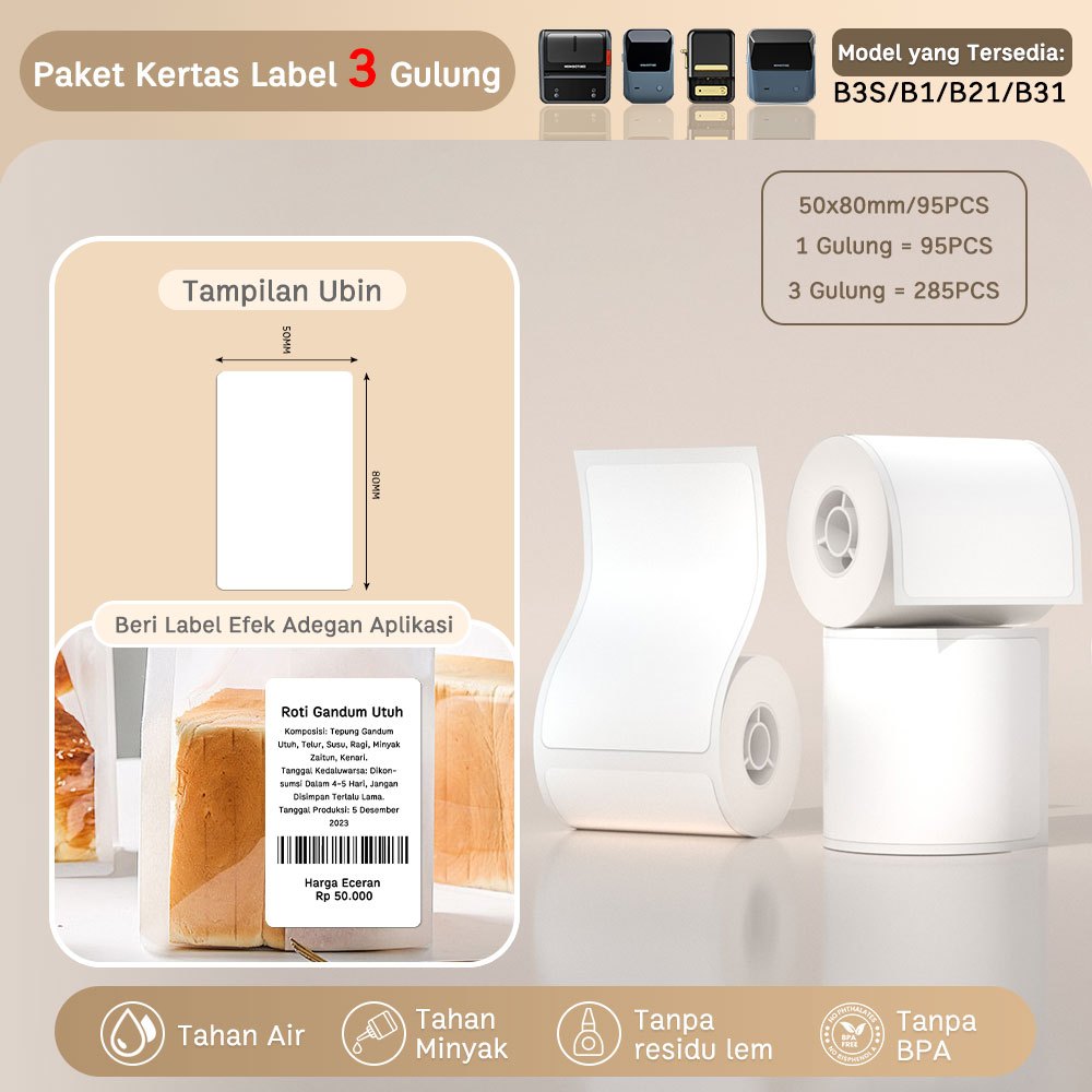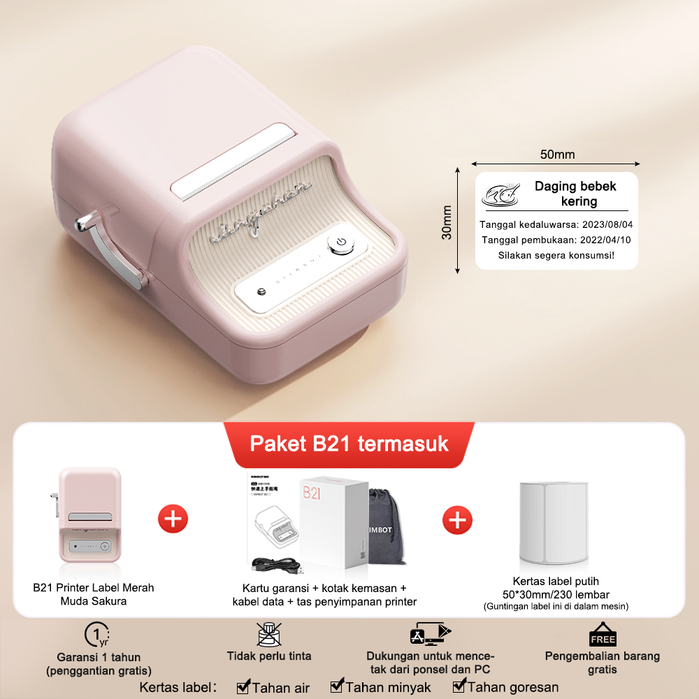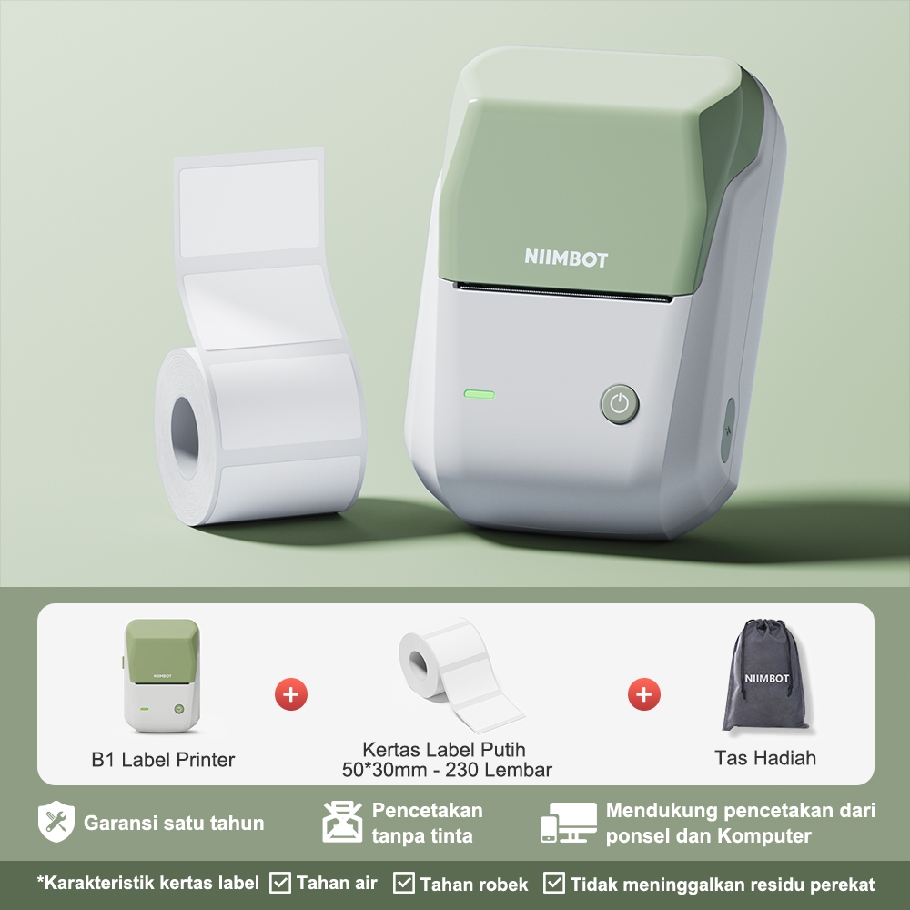 NIIMBOT B21 B1 Printer Label Termal Portabel, Printer Label Barcode Bluetooth, Garansi 1 Tahun