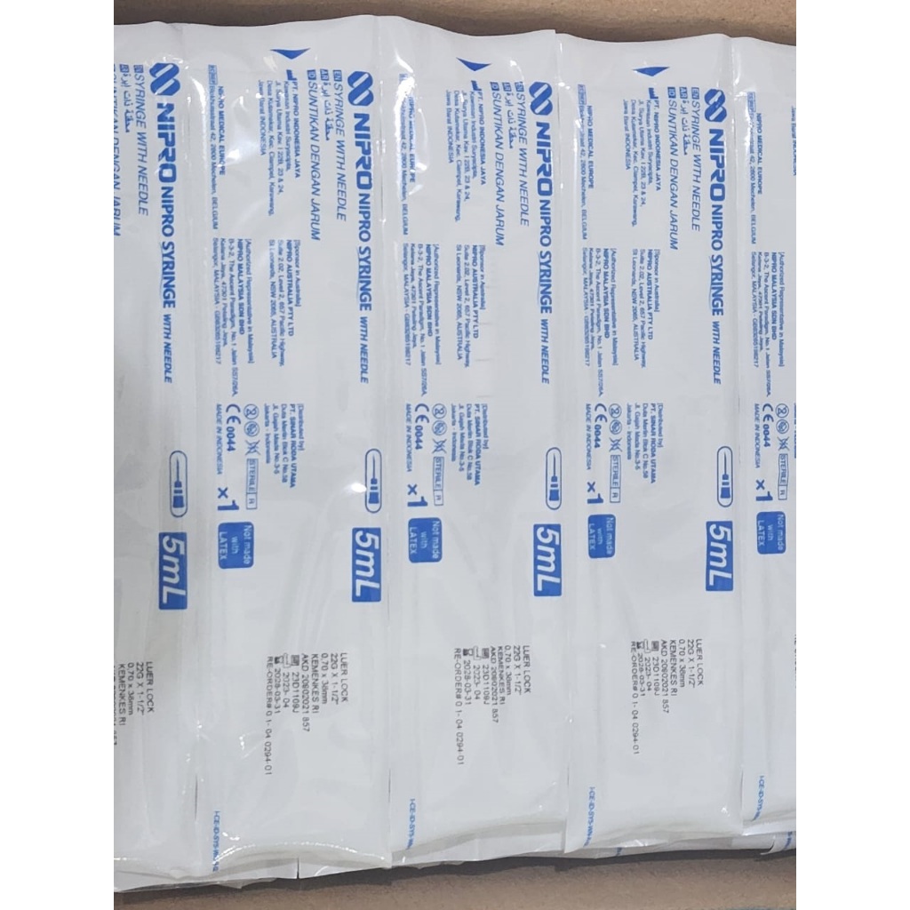NIPRO SYRINGE 5 CC WITH NEEDLE /SPUIT 5CC NIPRO PER BOX ISI 100 PCS