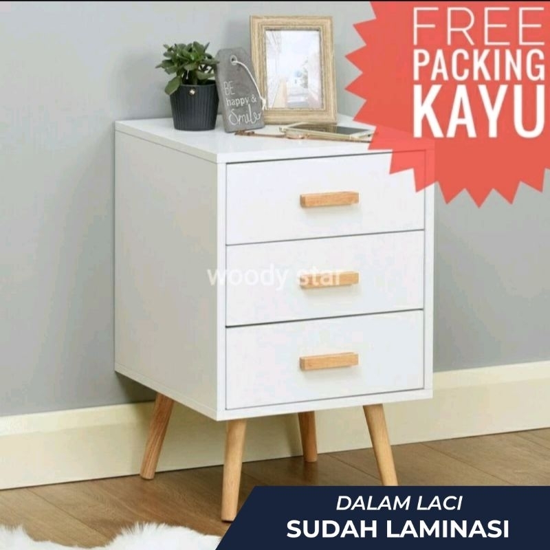 NK44 Meja nakas side table meja kamar meja kosmetik minimalis model laci 3 tiga murah premium jepara