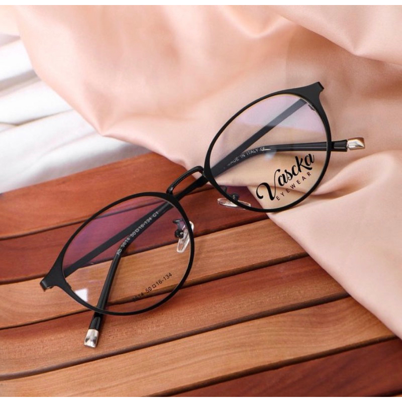 Vascka Eyewear - Frame Bingkai Kacamata Nobu Eyeglasses / Kacamata Oval Unisex Wanita Pria Optik Minus Anti Radiasi / Kacamata Besi Korea Korean Style Gaya Fashion Kekinian Trend / Kacamata Nosepad