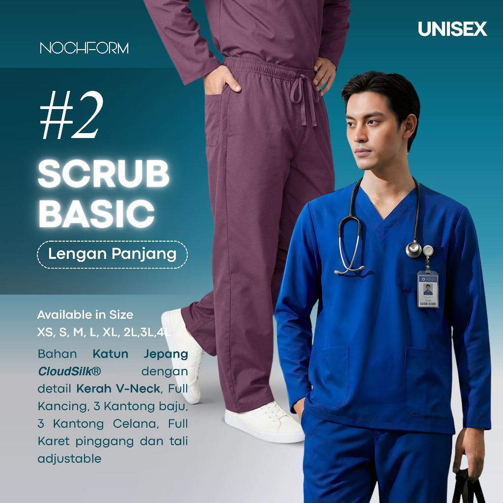 NOCHFORM (VOL 2) Doctor’s Scrub/ Set Baju Celana Jaga OKA / Baju OK Dokter / Baju OK Perawat / Baju Medis Lengan Panjang