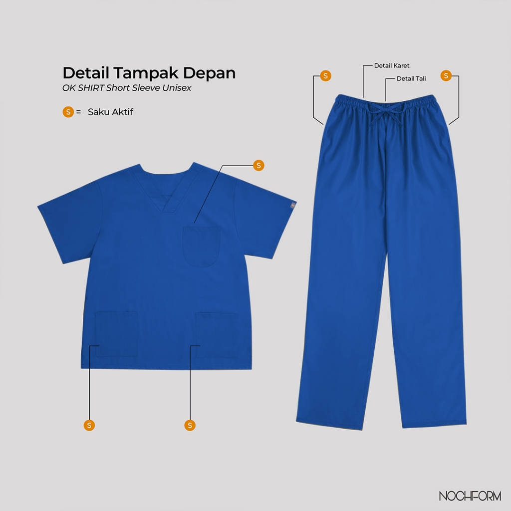 NOCHFORM (VOL 2) Doctor’s Scrub/ Set Baju Celana Jaga OKA / Baju OK Dokter / Baju OK Perawat / Baju Medis Lengan Pendek
