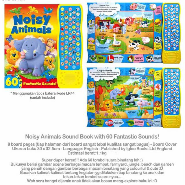 NOISY ANIMALS atau NOISY FARM SOUND BOOK WITH 60 FANTASTIC SOUND (BUKU EDUKASI ANAK)