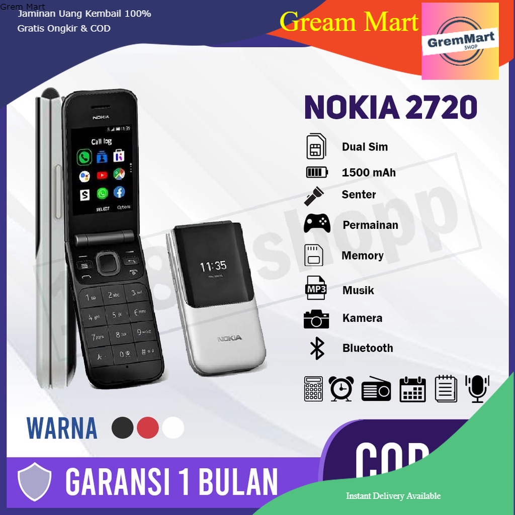 NOKIA 2720 FLIP DUAL SIM GARANSI HP JADUL NOKIA JADUL LIPAT