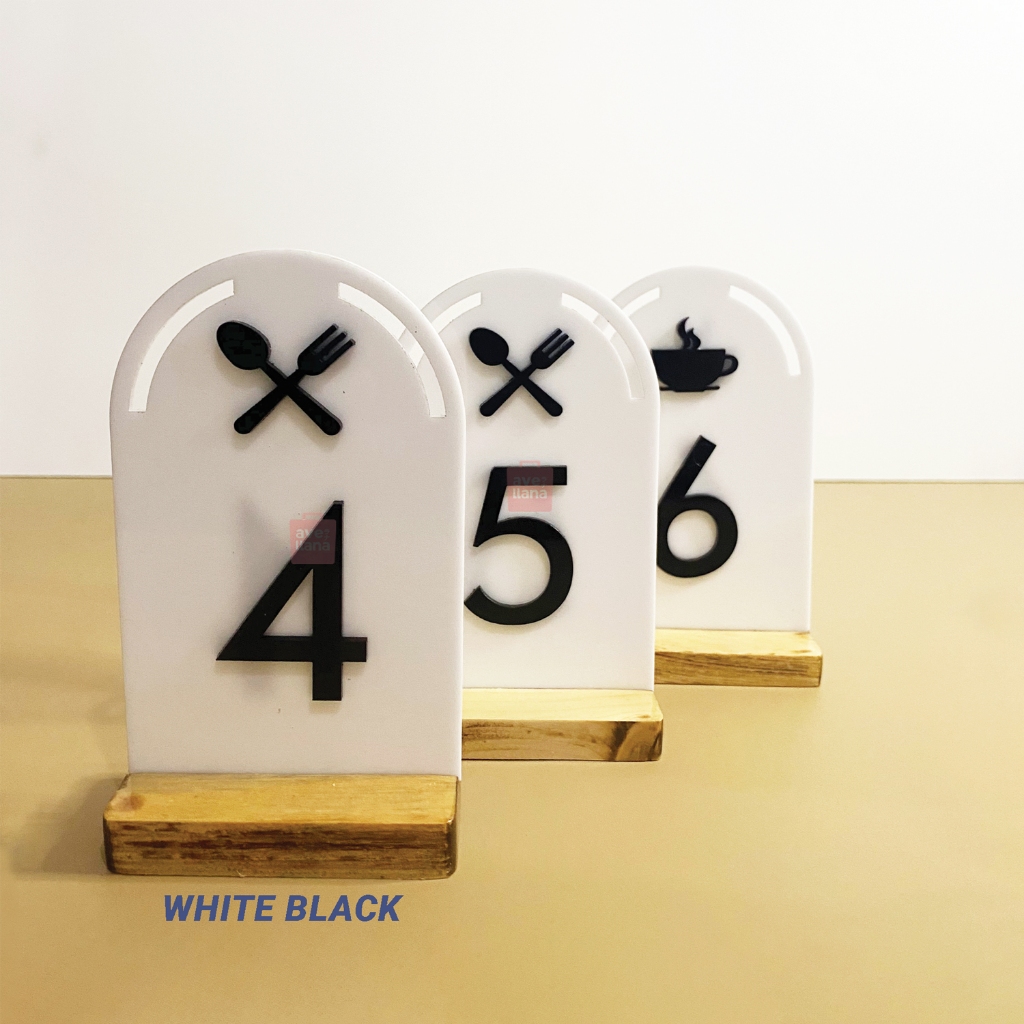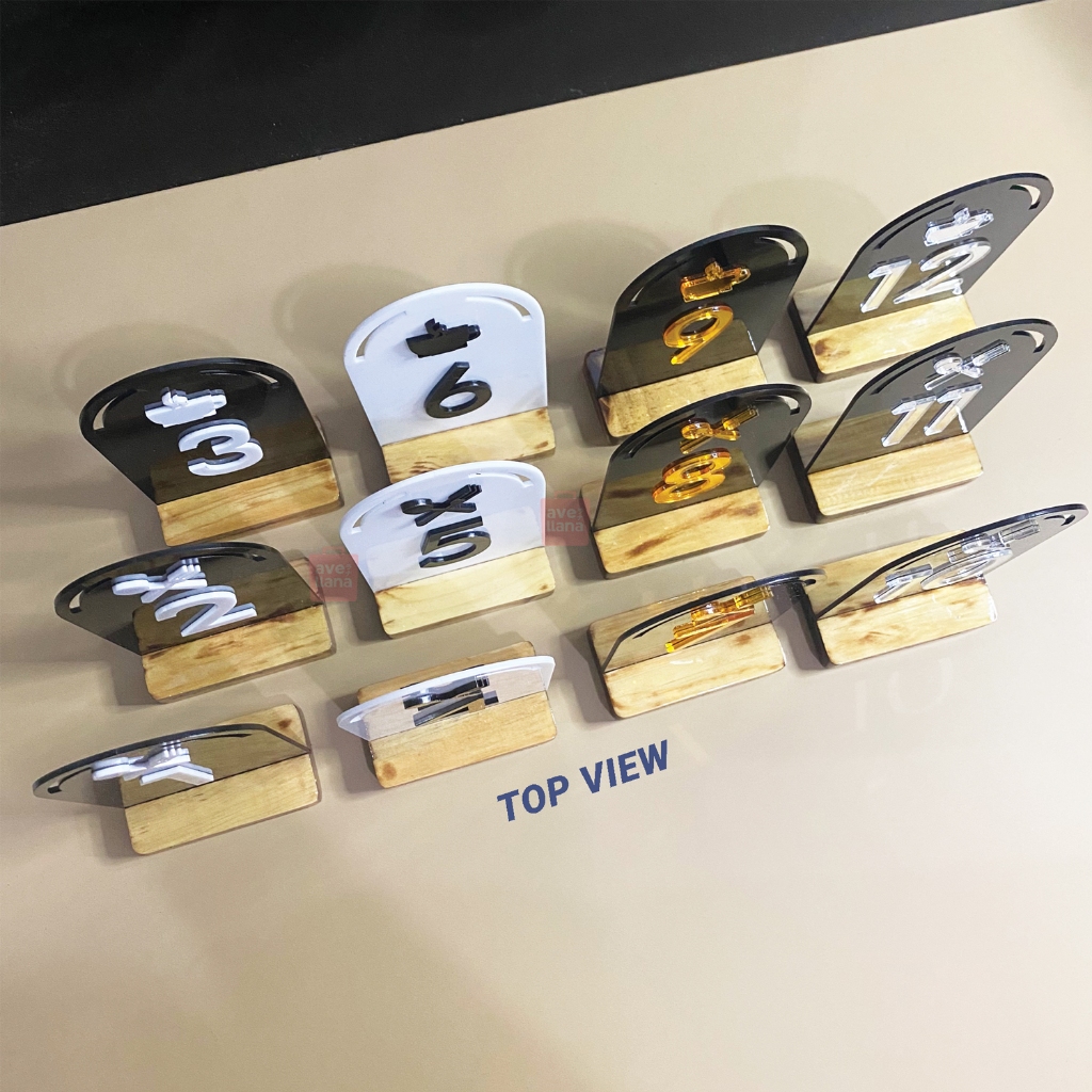 NOMOR MEJA CAFE RESTORAN OVAL BAHAN AKRILIK DAN KAYU WOODEN TABLE NUMBER