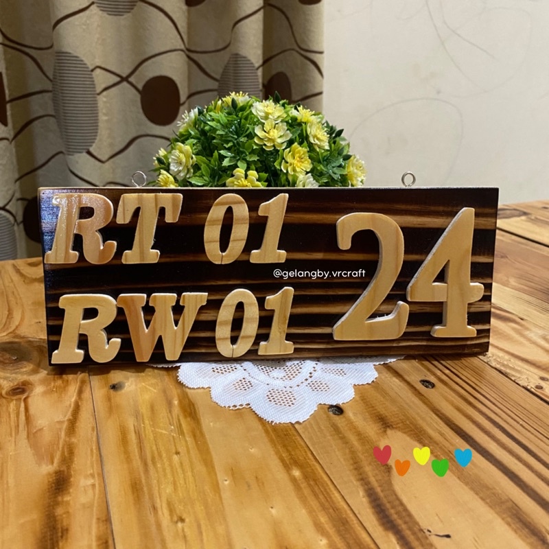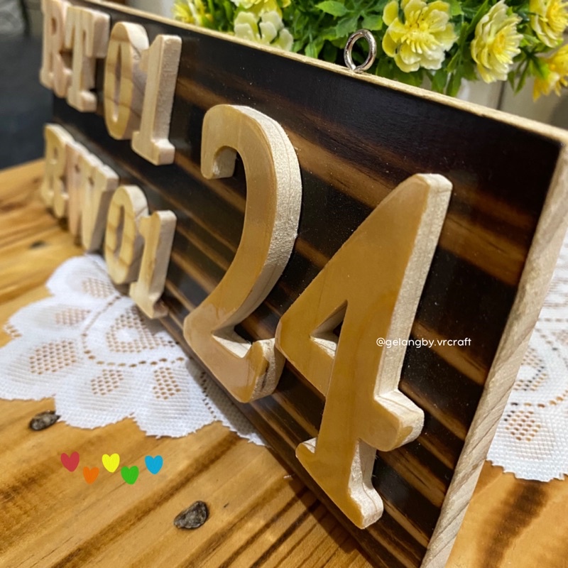 NOMOR RUMAH RT RW 25 x 10 cm / BAHAN KAYU PINUS / NOMOR RUMAH KAYU AESTHETIC