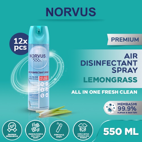 Lemongrass 12x 550ml Air Disinfectant Spray - NORVUS