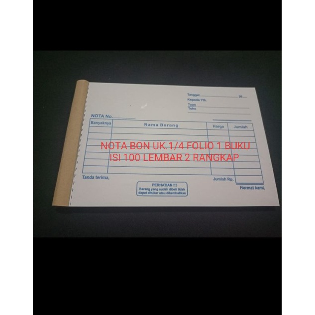 NOTA BON KONTAN NOTA BON JUALAN NOTA JUALAN BON JUALAN BON KONTAN CETAK BON NOTA UK.1/4 FOLIO ISI 100 LEMBAR