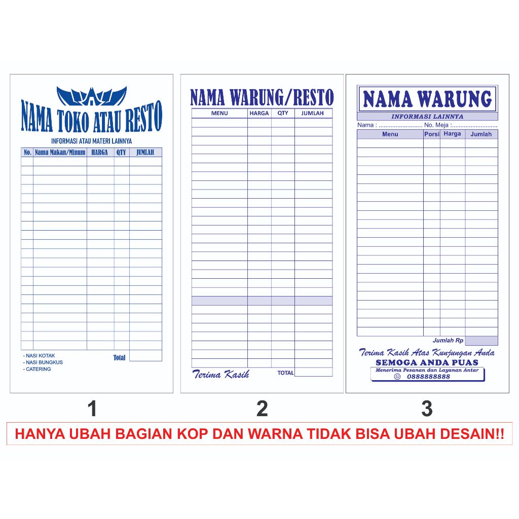 NOTA / BON MENU RESTORAN COSTUM UK.F4/3 (21,5x11cm)