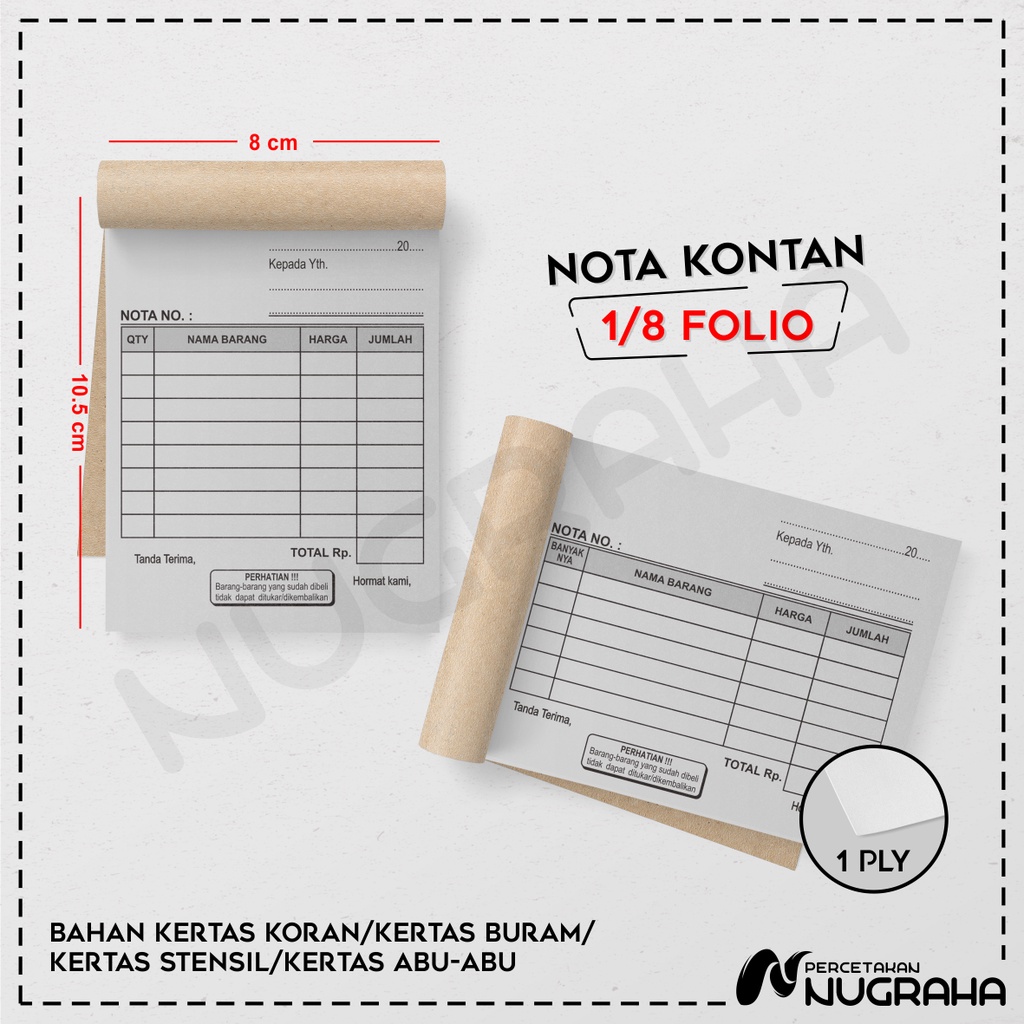 NOTA UKURAN 1/8 FOLIO BAHAN KERTAS KORAN / STENSIL (KERTAS BURAM) / BUKU NOTA KONTAN TANPA RANGKAP Isi 50 lembar