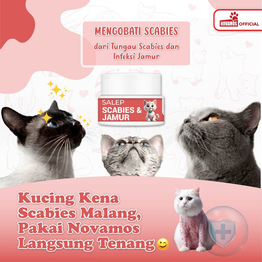 NOVAMOS Salep Scabies & Jamur - Obat Atasi Gatal Kulit Kucing Anjing Aman Terjilat