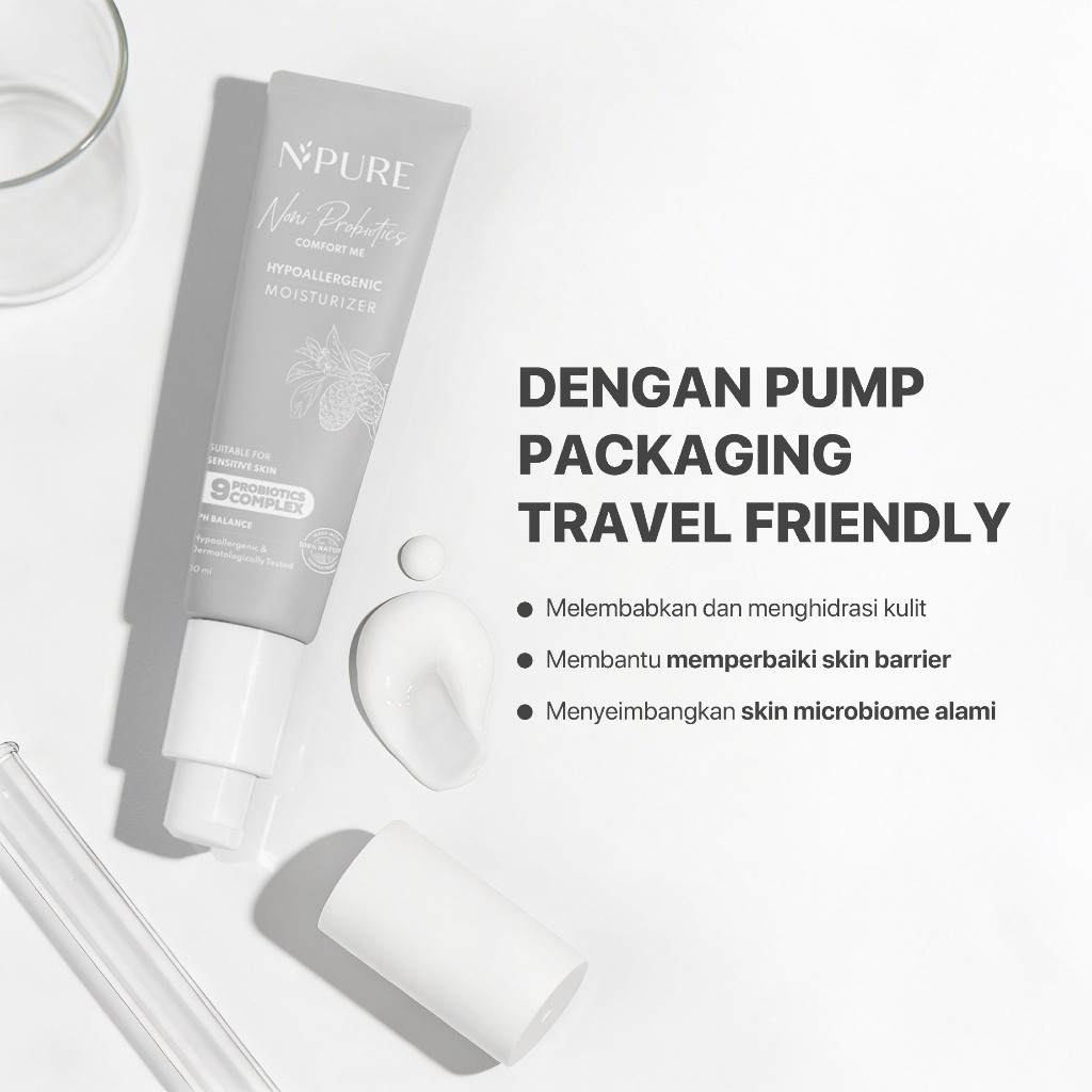 NPURE Sensitive Moisturizer Noni 30 ml / Soothing / Kulit Sensitif / Microbiome / Pelembap Ringan / Hypoallergenic / Kulit kemerahan / Iritasi / Skin Barrier / Ceramide / No Alcohol Fragrance / Dermatologically / Aman Bumil Busui / HALAL