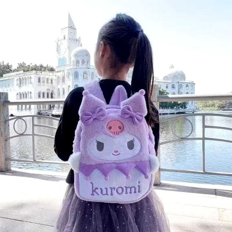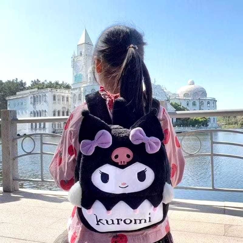 NS Tas Anak Sekolah Ransel Karakter Lucu bahan bulu Lembut terbaru Hitam Kuromi Putih Cinamorol Pink My Melody