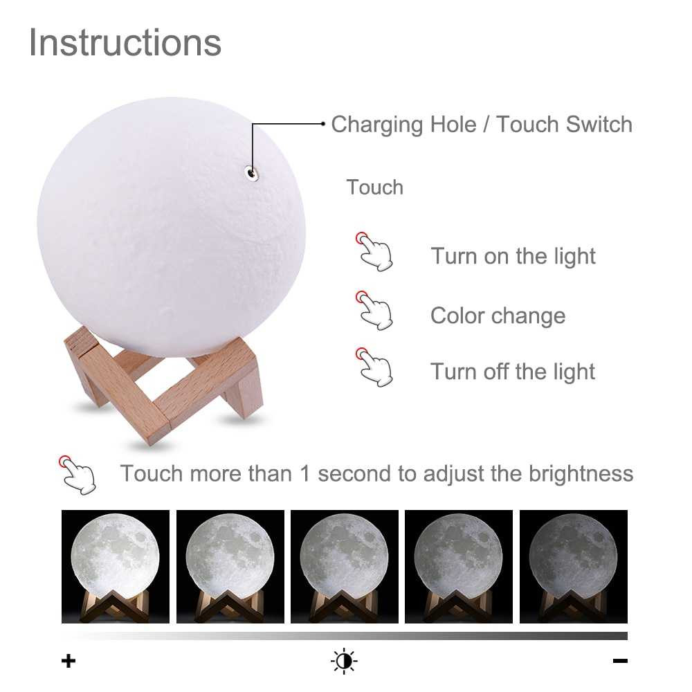 LPKSTORE RAMBERY Lampu Tidur 3D Printed Moon Night Light Lamp 12 cm - ROX-05