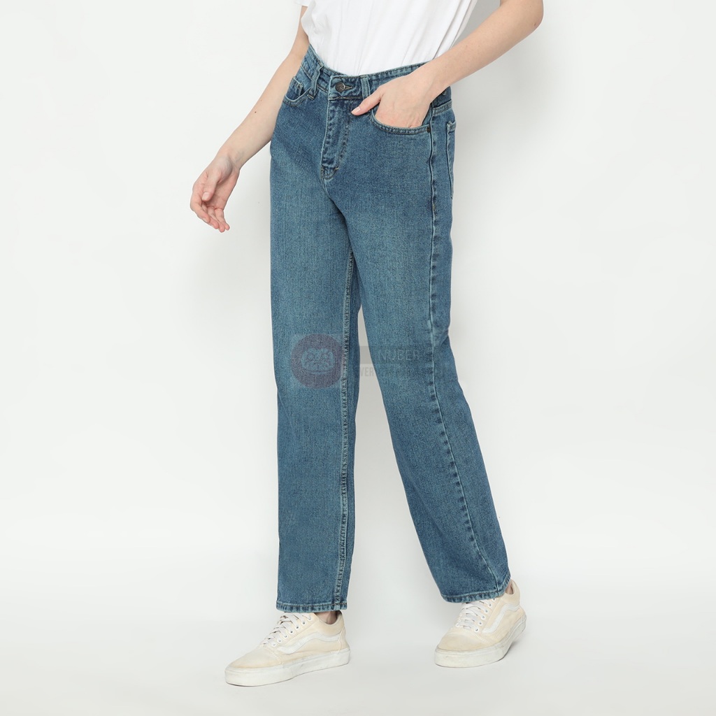 Nuber Straight Regular Fit High Waist Jeans Celana Panjang Wanita Cintia Biru Hitam Spray