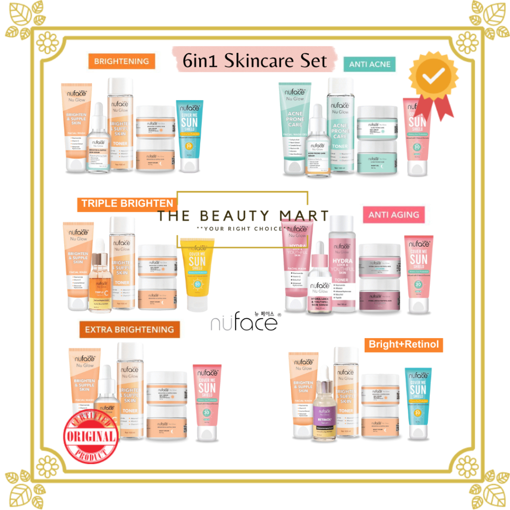 NUFACE 6in1 Paket Skincare Perawatan wajah| Nuface Face Wash|Toner|Serum|Day/Night Cream|Sunscreen