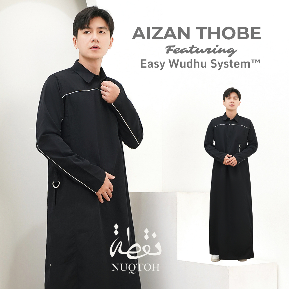 NUQTOH x ABYAD | AIZAN Thobe | Gamis Pria Premium dengan Slim Silhouette & Signature Piping & UV Protection