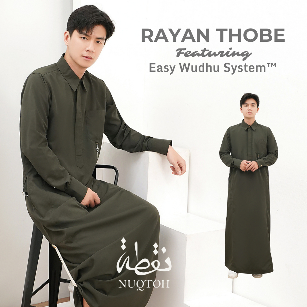 NUQTOH x ABYAD | RAYAN Thobe | Gamis Pria Premium Slim Silhouette Clean Look dengan Easy Wudhu System & UV Protection