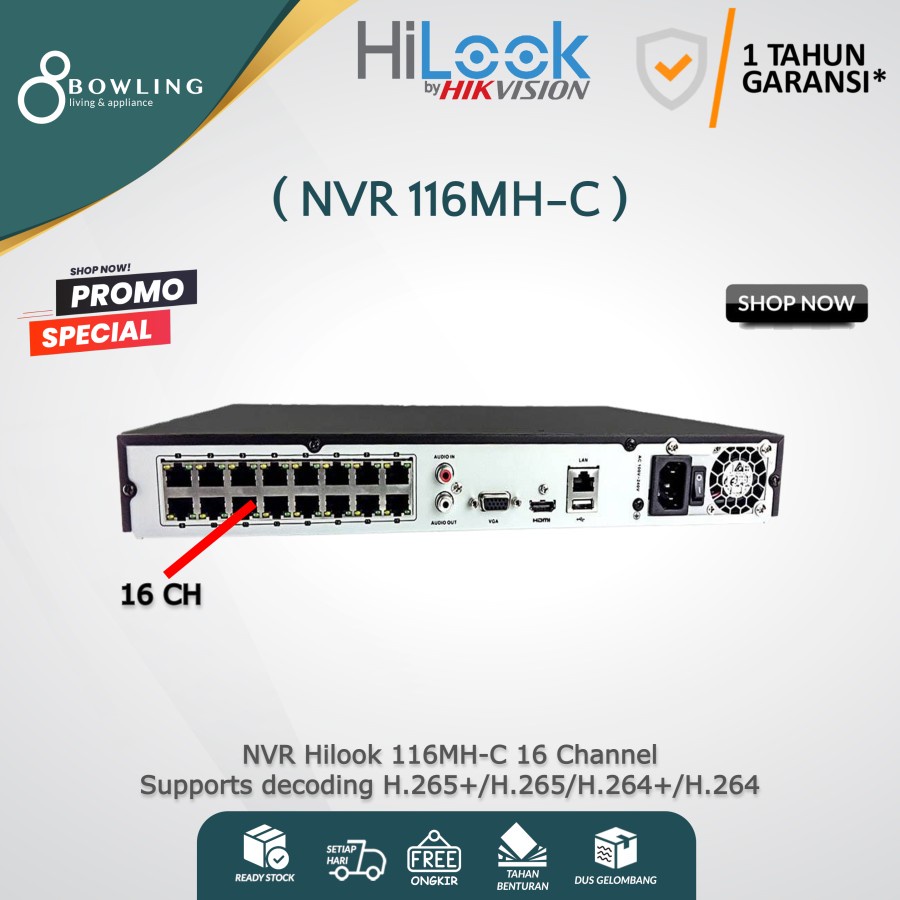 NVR CCTV Hilook 16Ch 16 Channel NVR-116MH-C By Hikvision Original