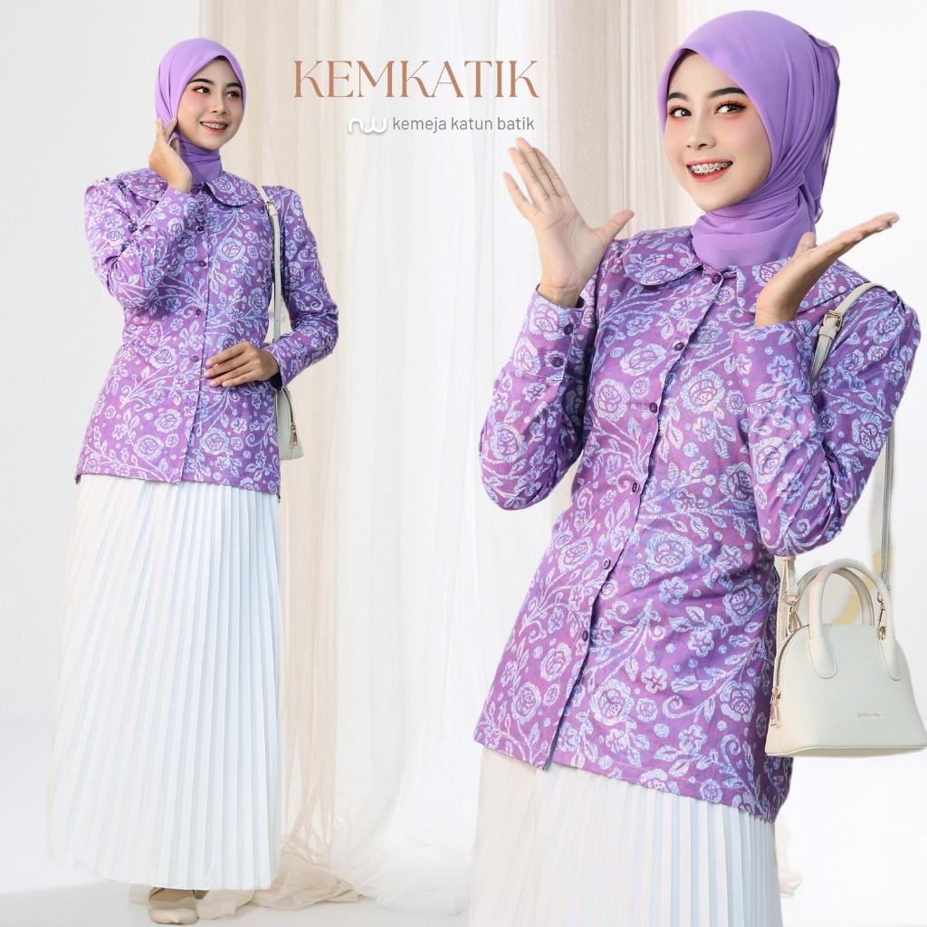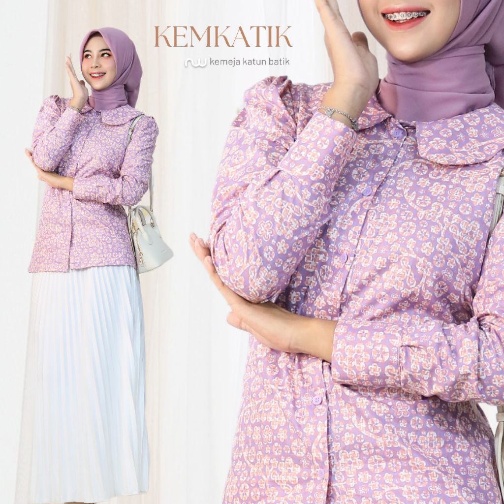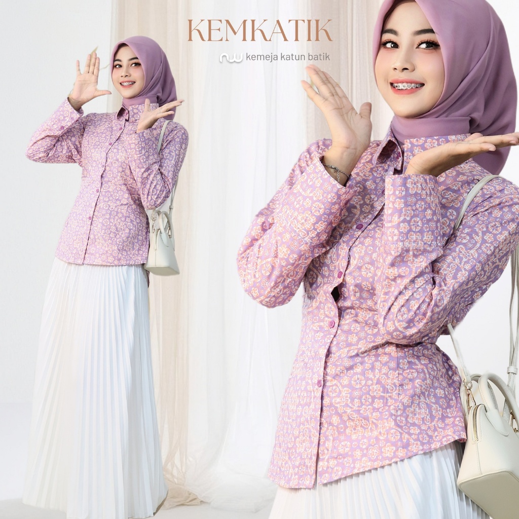 NW Official Original - ORI - Kemeja Batik Modern Wanita warna Soft Pastel Pink Ungu Muda Remaja genZ bahan katun adem cocok untuk kerja atau kuliah/sekolah ataupun ke Kondangan, seragaman cantik, Wispie batik, korean style