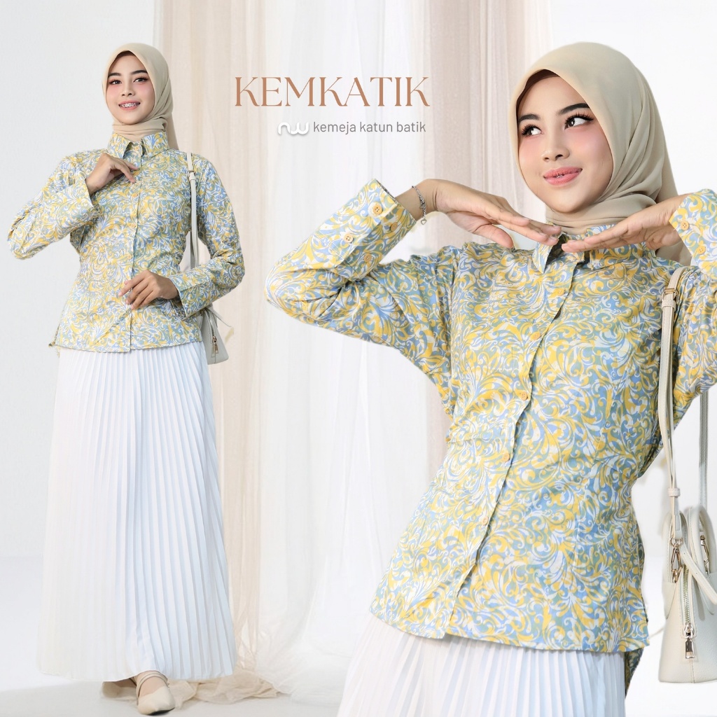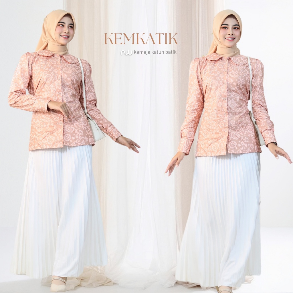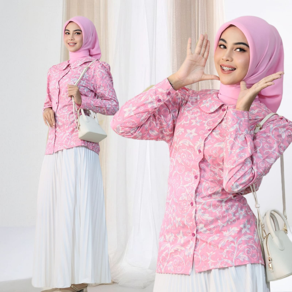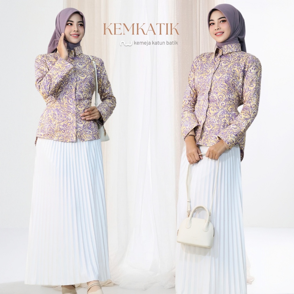 NW Official Original - ORI - Kemeja Batik Modern Wanita warna Soft Pastel Pink Ungu Muda Remaja genZ bahan katun adem cocok untuk kerja atau kuliah/sekolah ataupun ke Kondangan, seragaman cantik, Wispie batik, korean style