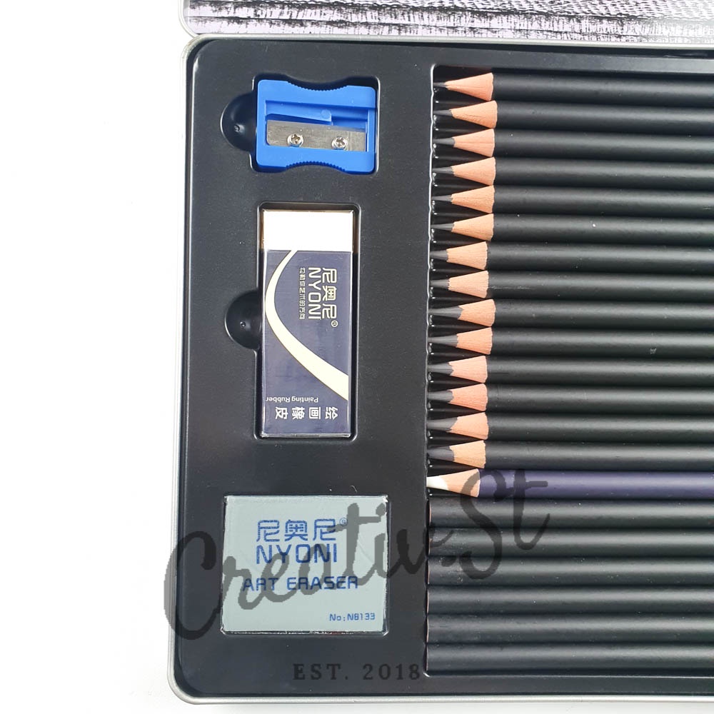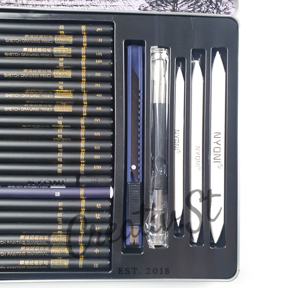 NYONI Sketch Drawing Pencil Set Charcoal Paper Stump Eraser Sharpener Cutter