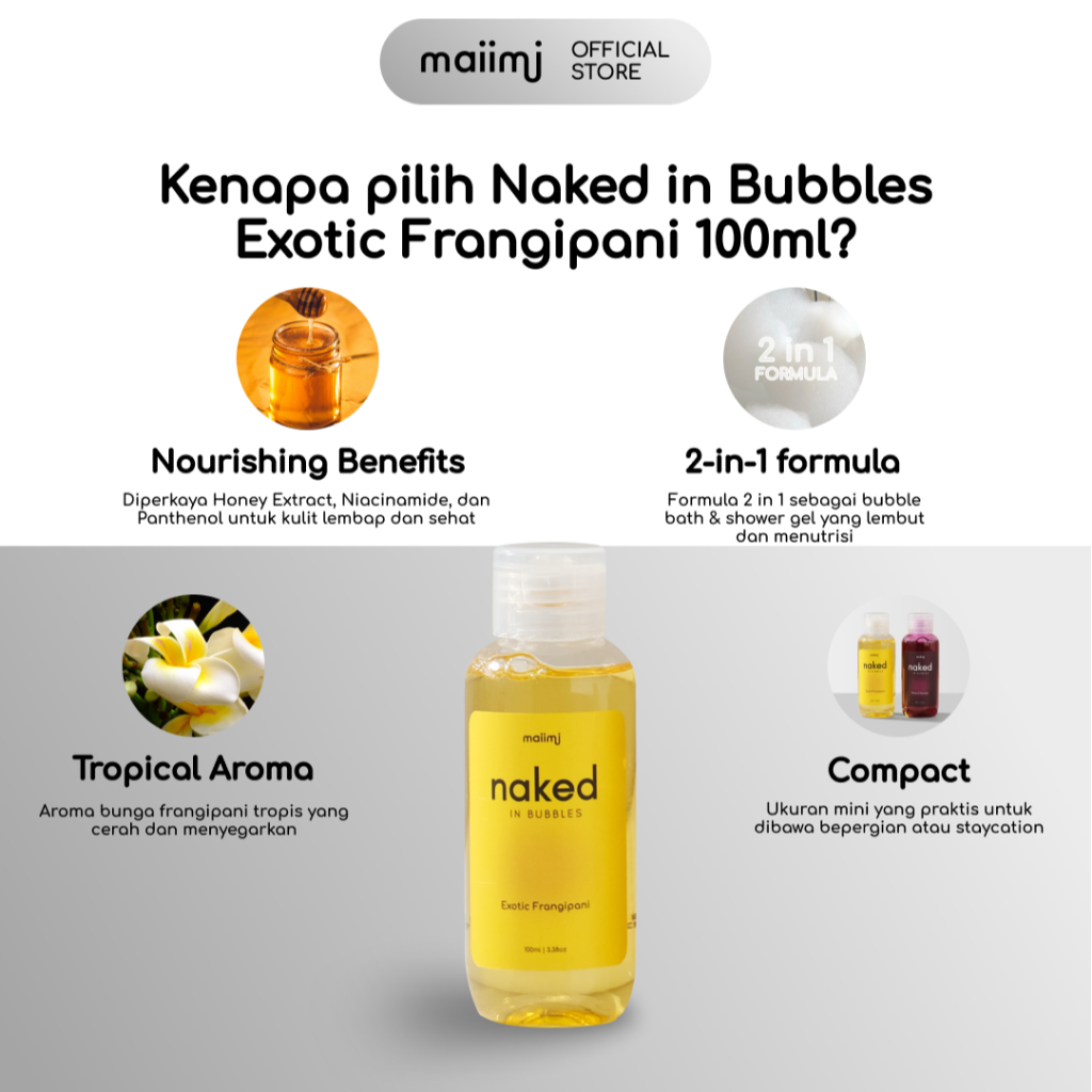 Naked In Bubbles Travel Single: Exotic Frangipani - 100ml | Bubble Bath | Sabun Busa
