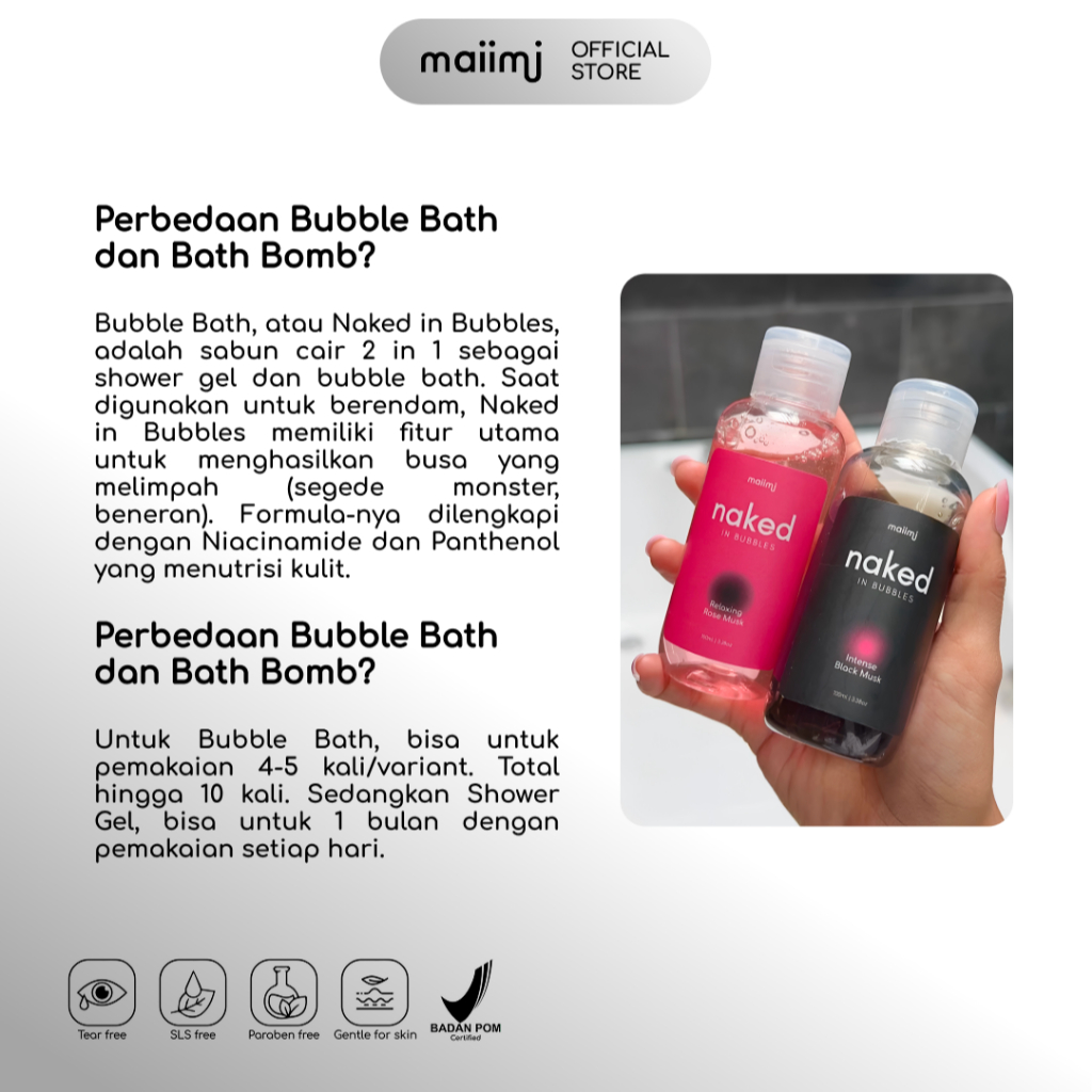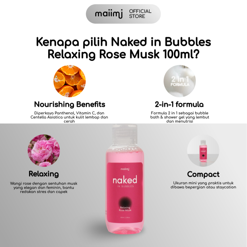 Naked In Bubbles Travel Single: Relaxing Rose Musk - 100ml | Bubble Bath | Sabun Busa