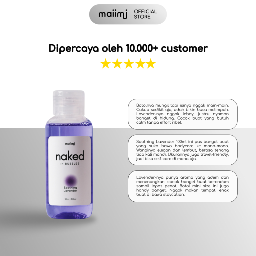 Maiimi - Naked In Bubbles Travel Single: Soothing Lavender 100 ml | Bubble Bath | Sabun Busa