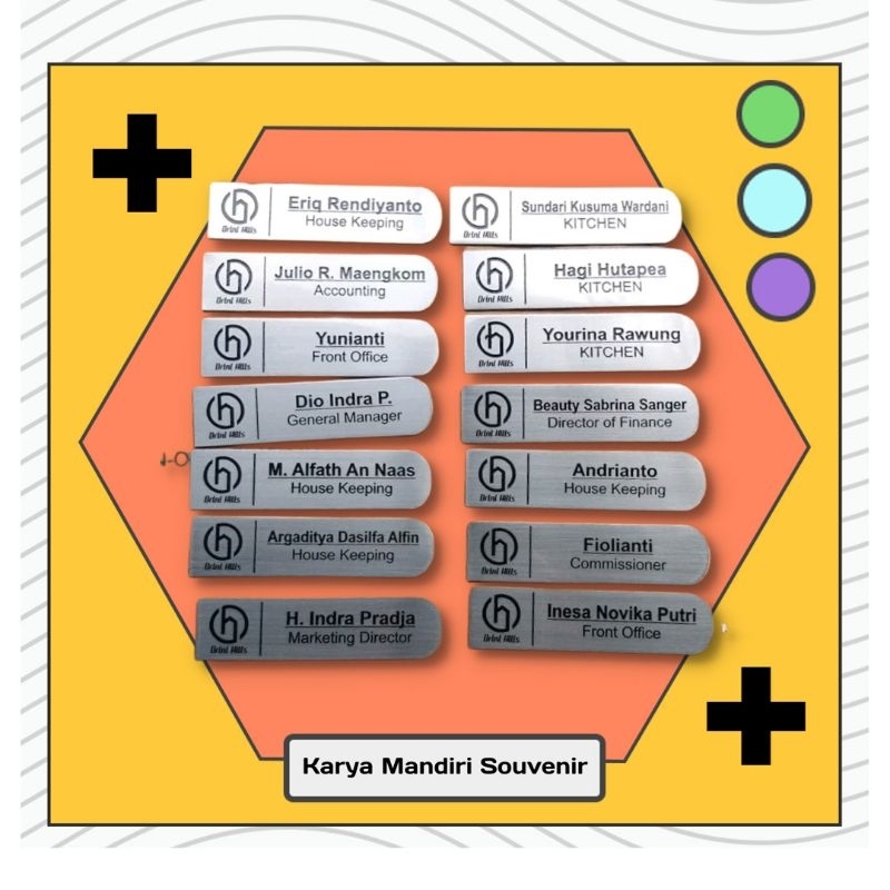 Nama Dada Nametag Custom Grafir Bahan Stainless | Bisa Request Nama & Logo Sesuai Permintaan