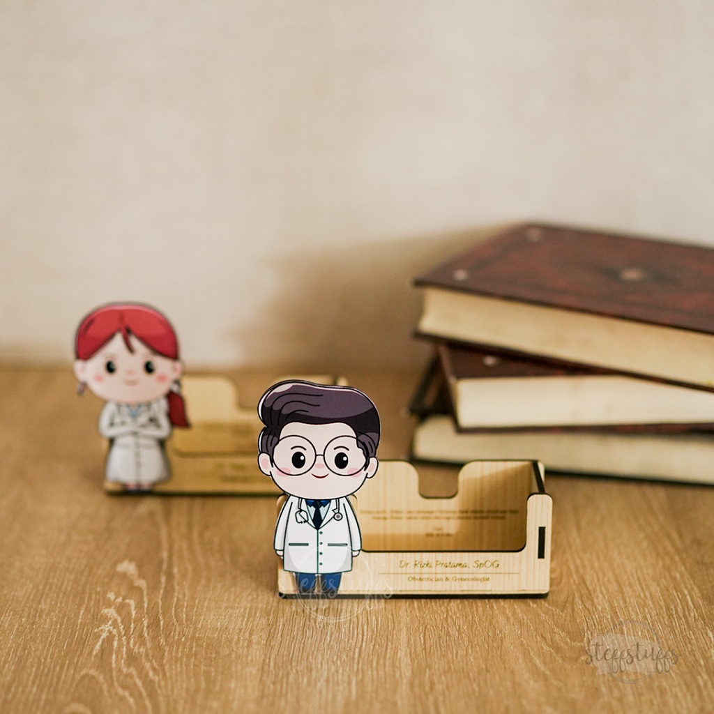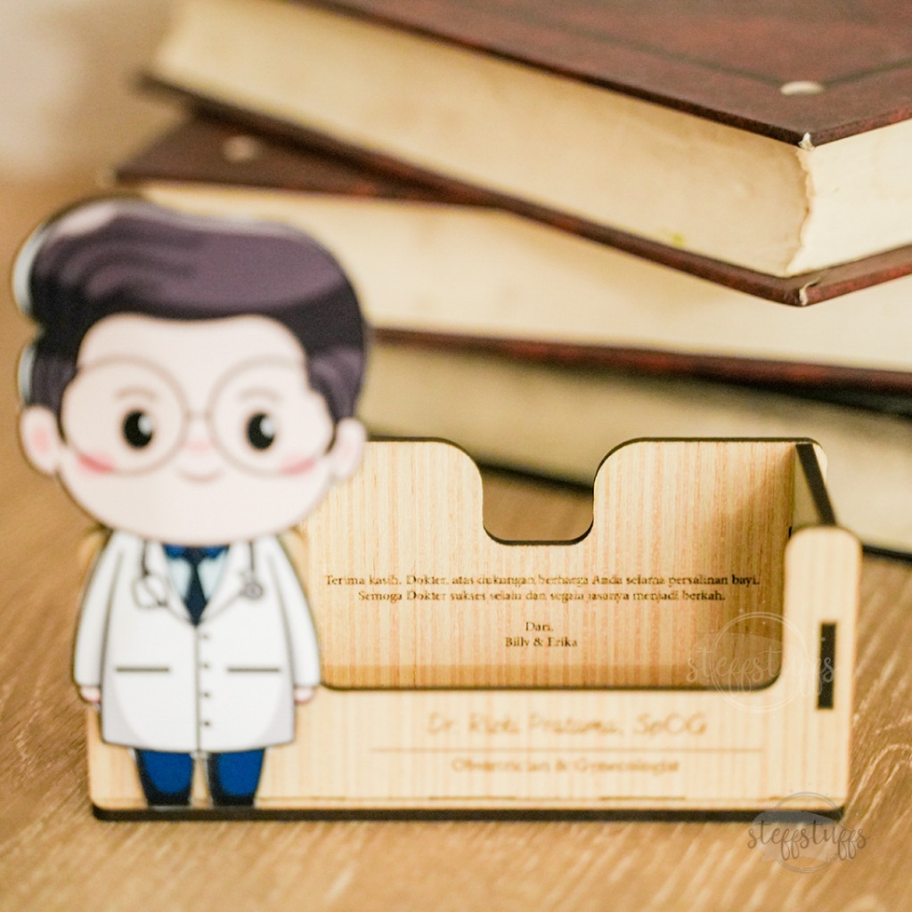 Name Card & Pen Holder Hadiah Kado Dokter Obgyn Custom Text Ucapan Tempat Pensil Bolpen Kartu Nama Lahiran Bidan