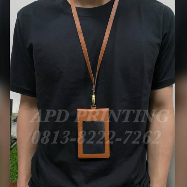 Name Tag ID Card Tali Dompet Kartu Tali 2 Sisi Kulit Coklat