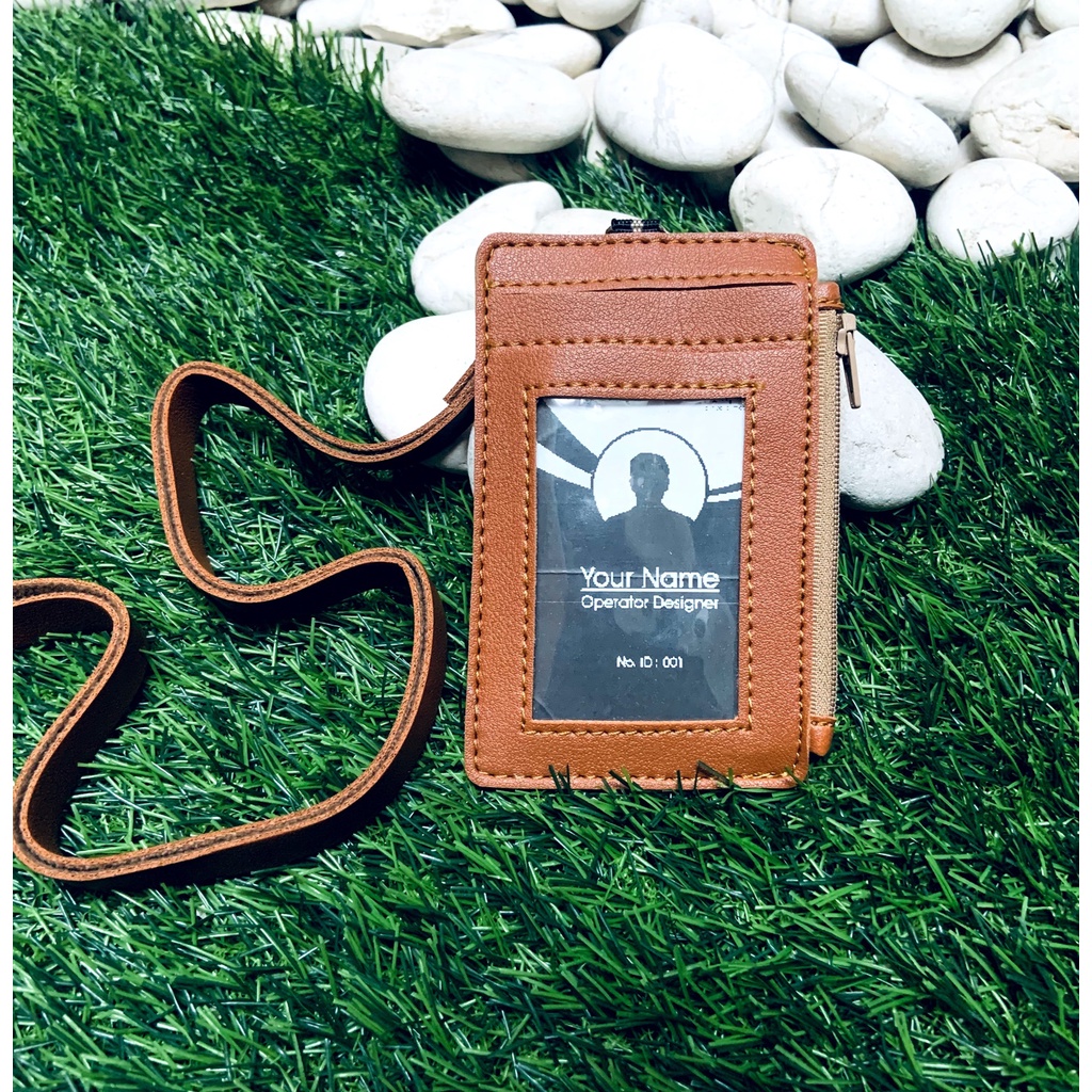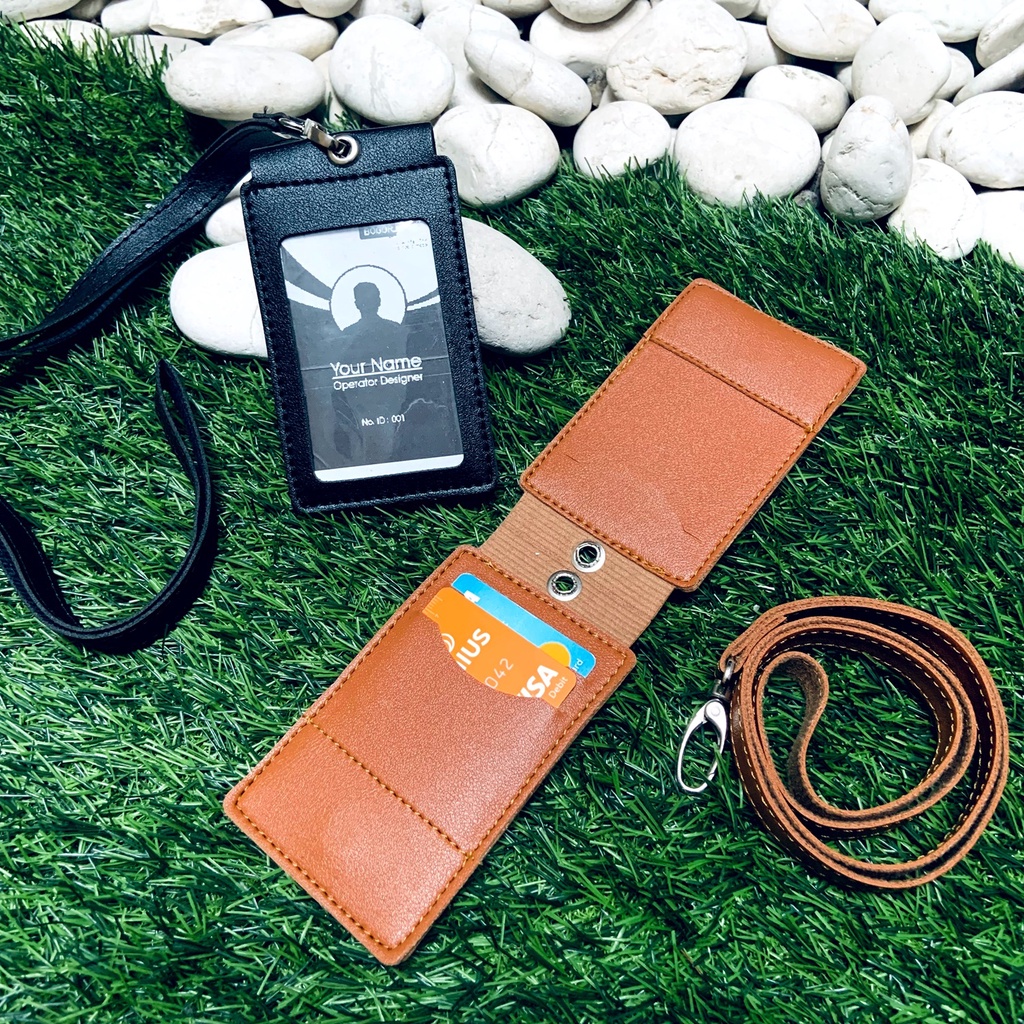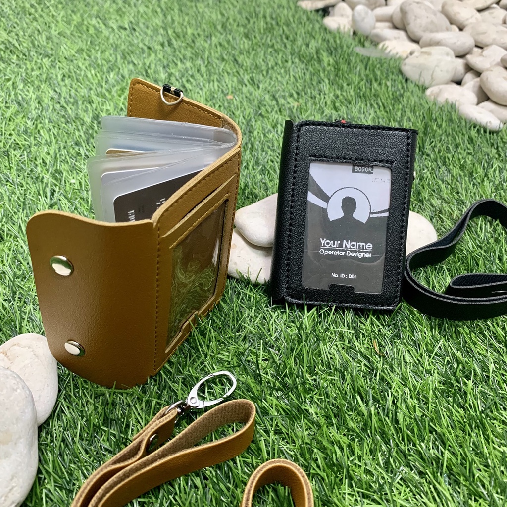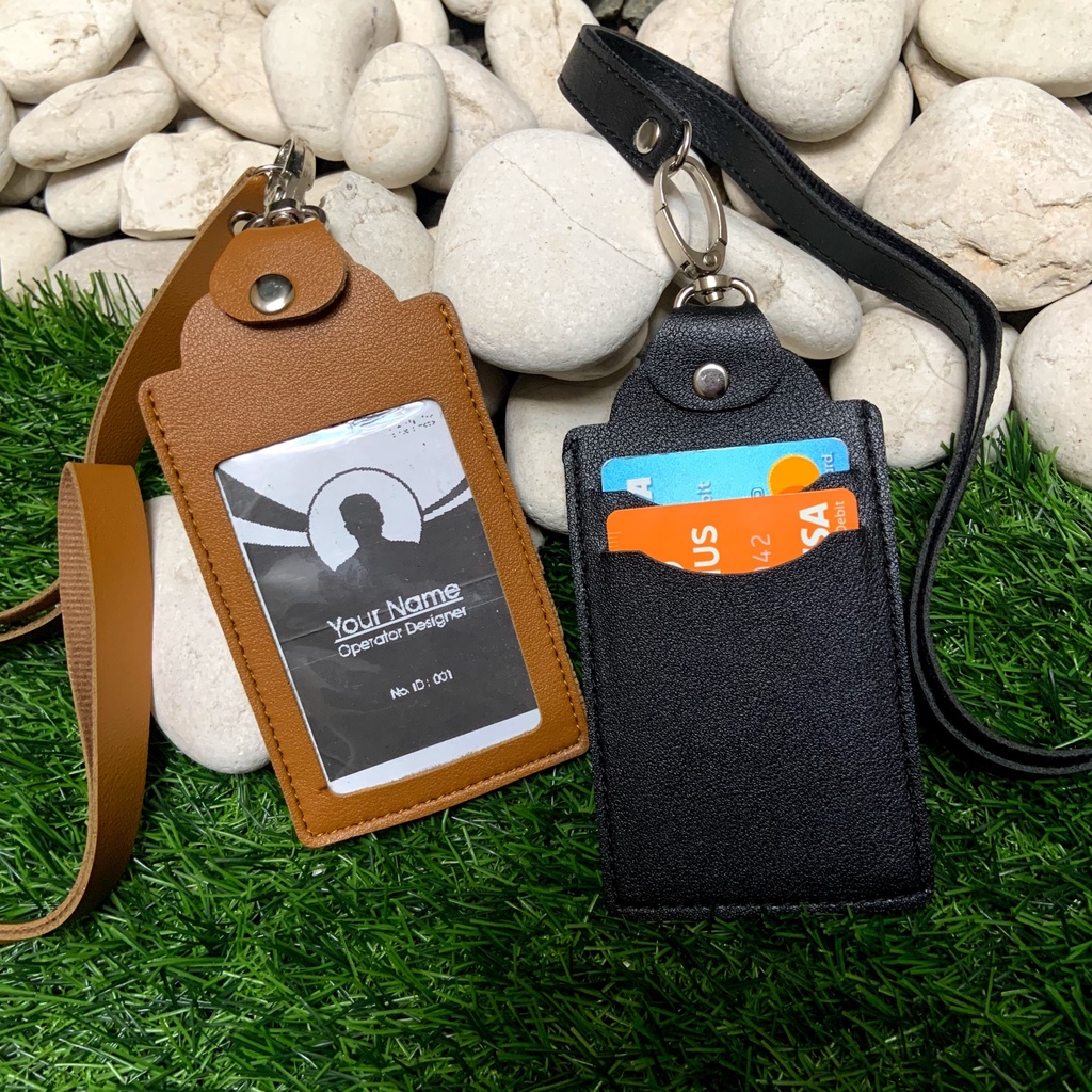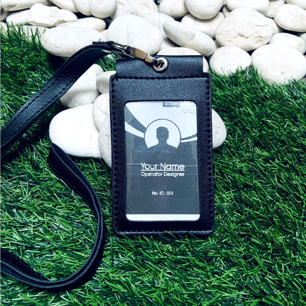 Name Tag Kulit FRONT HITAM Lanyard Magnet Id Card Holder Koper Pegawai Tipe D